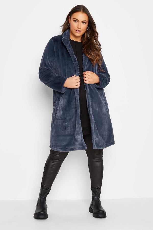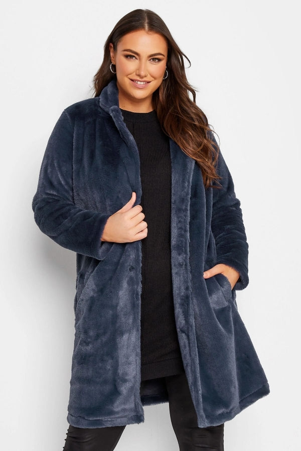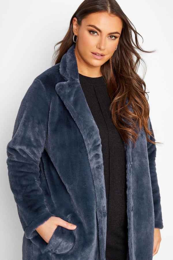 Büyük Beden Suni Kürk Uzun Kesim Cepli Kaban 301584