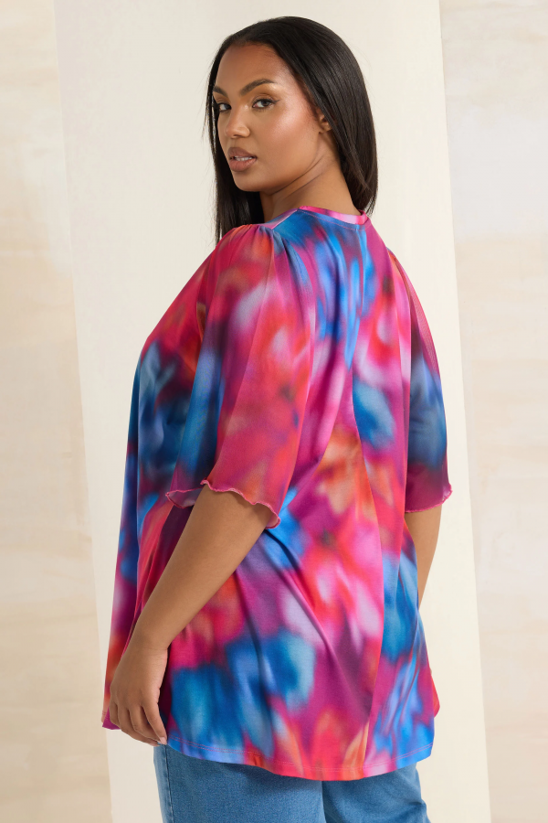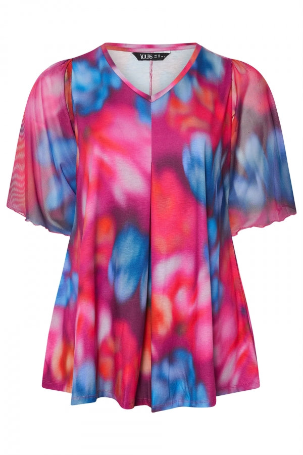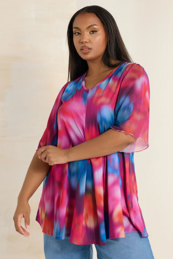 Büyük Beden Uzun Kolları Tül Detaylı Pileli V Yaka Bluz 321822