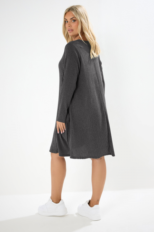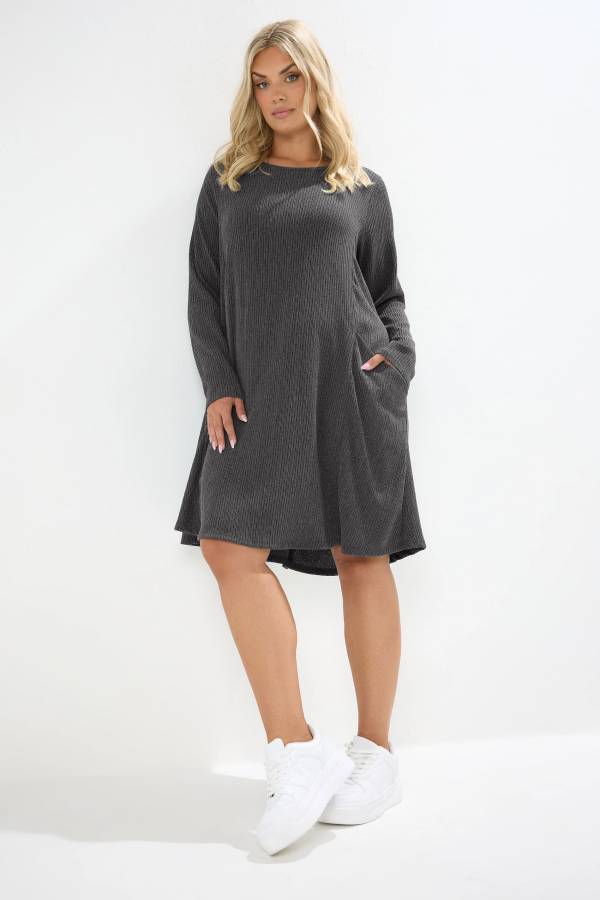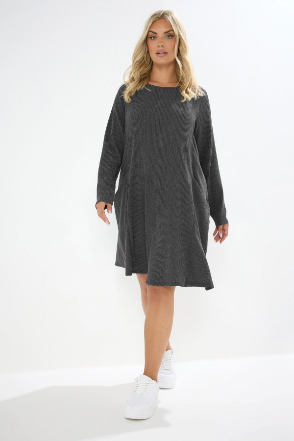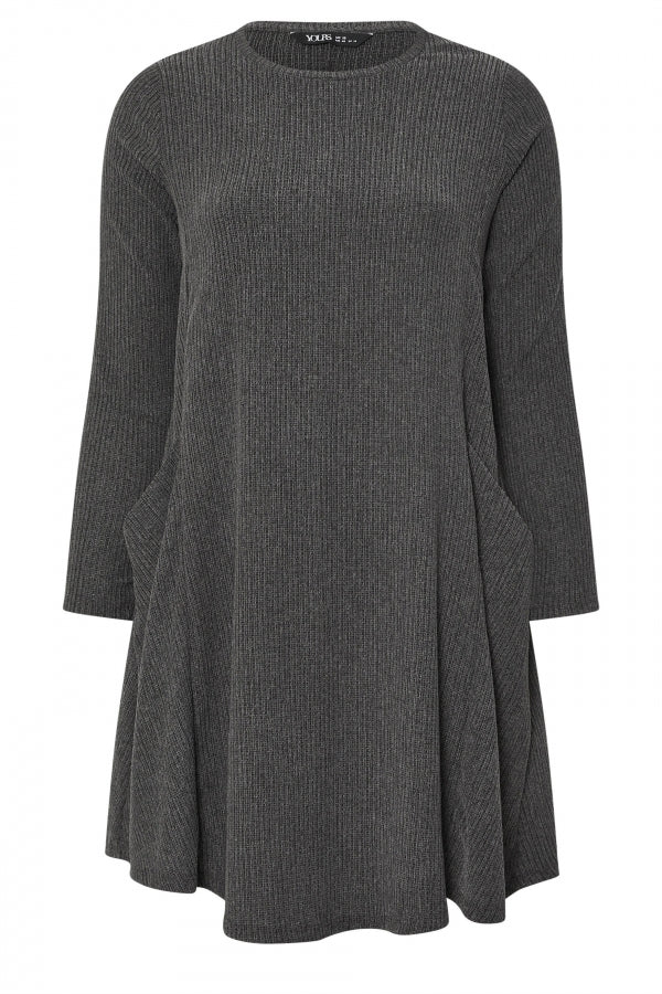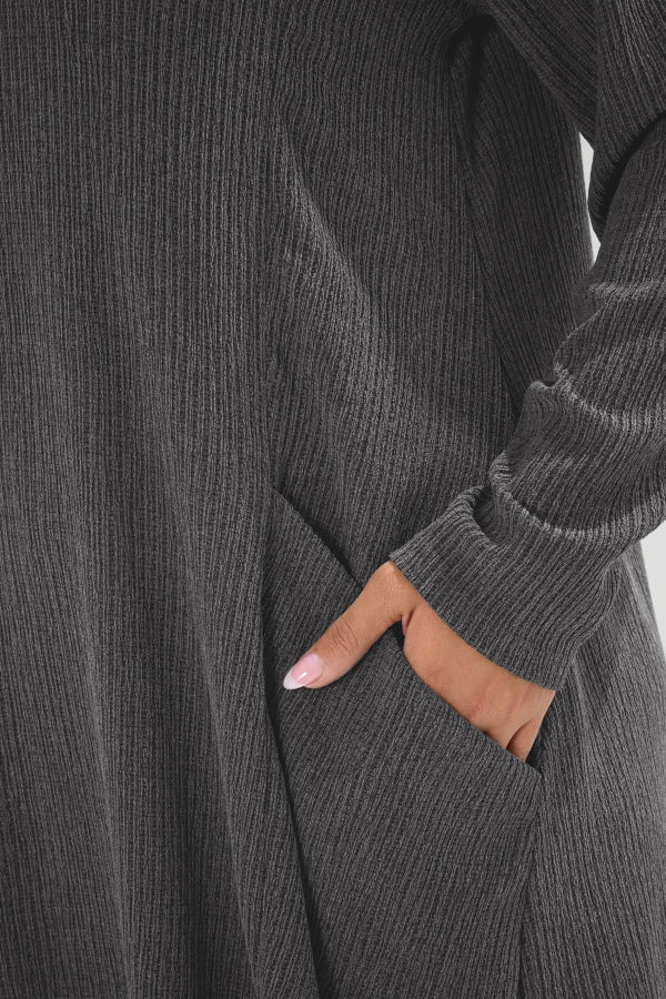 Büyük Beden Uzun Kollu Bisiklet Yaka Cepli Fitilli Elbise 304008