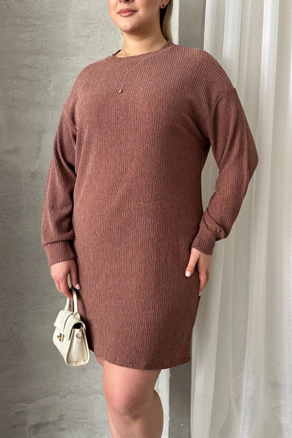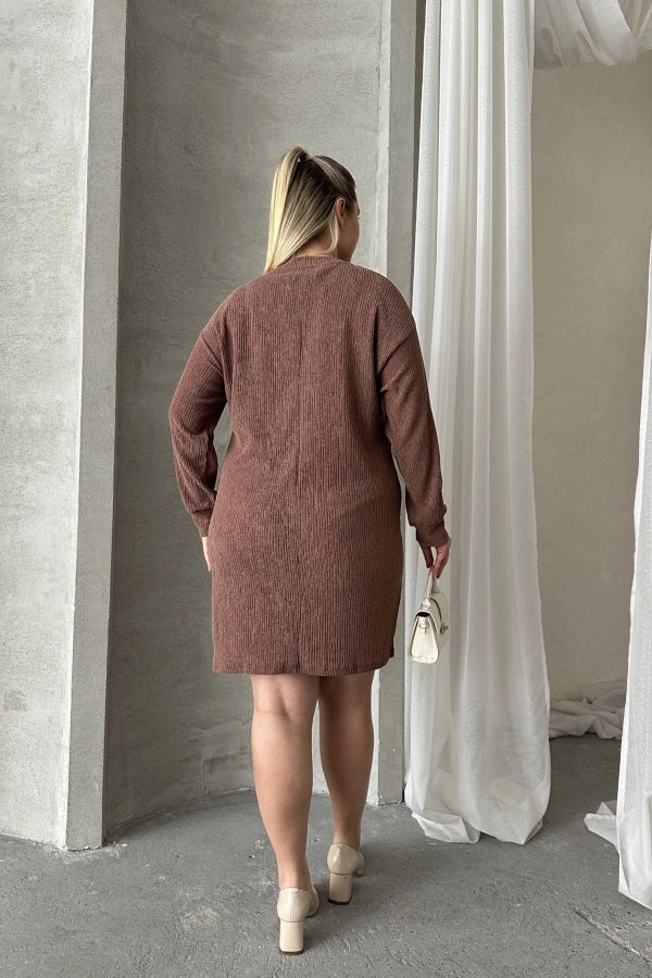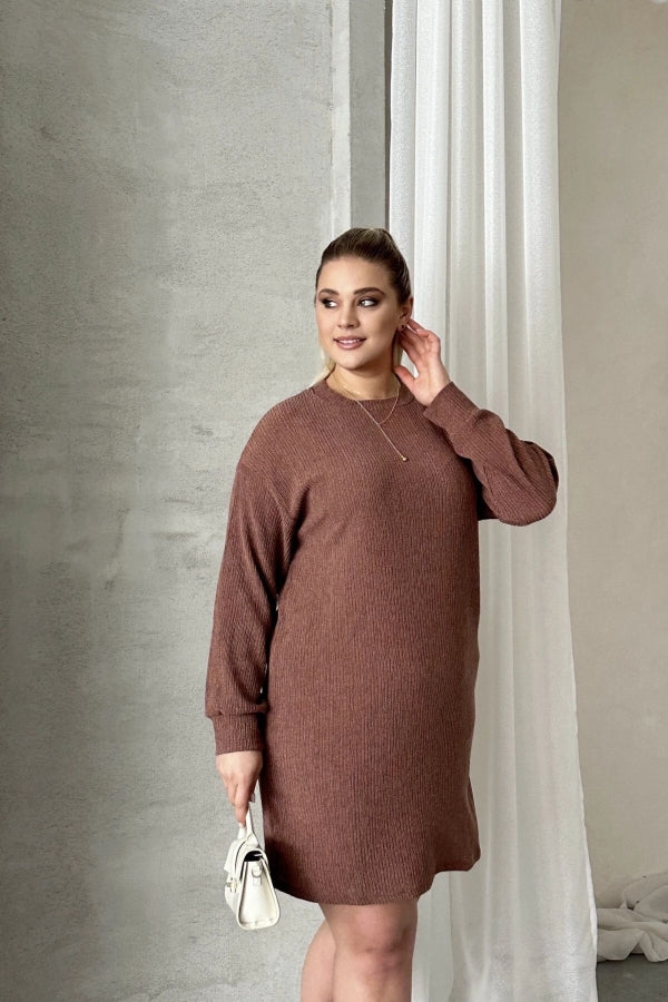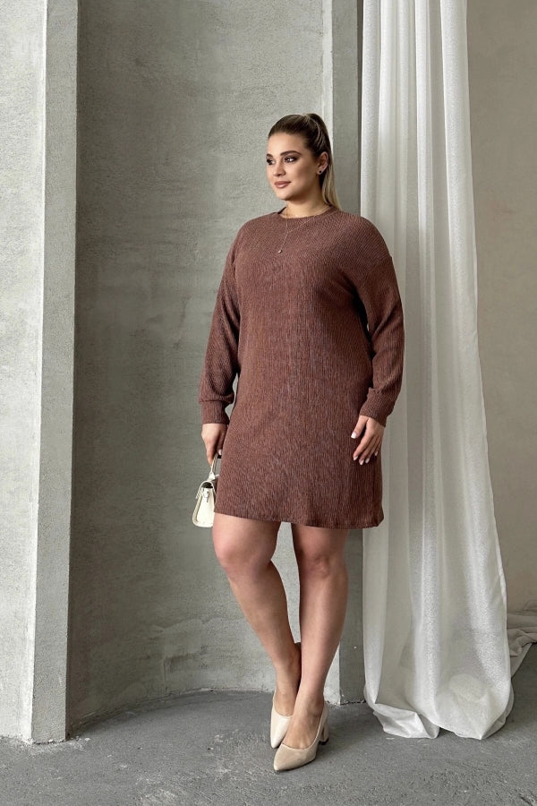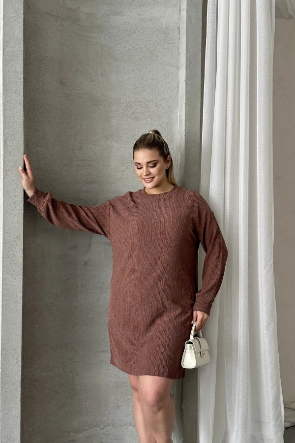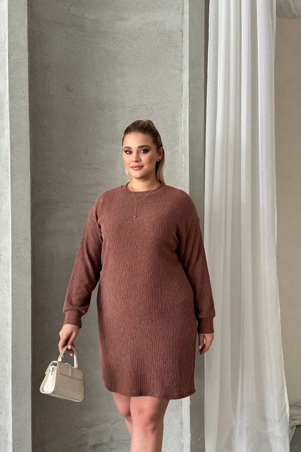 Büyük Beden Uzun Kollu Bisiklet Yaka Düz Kesim Elbise 100-189