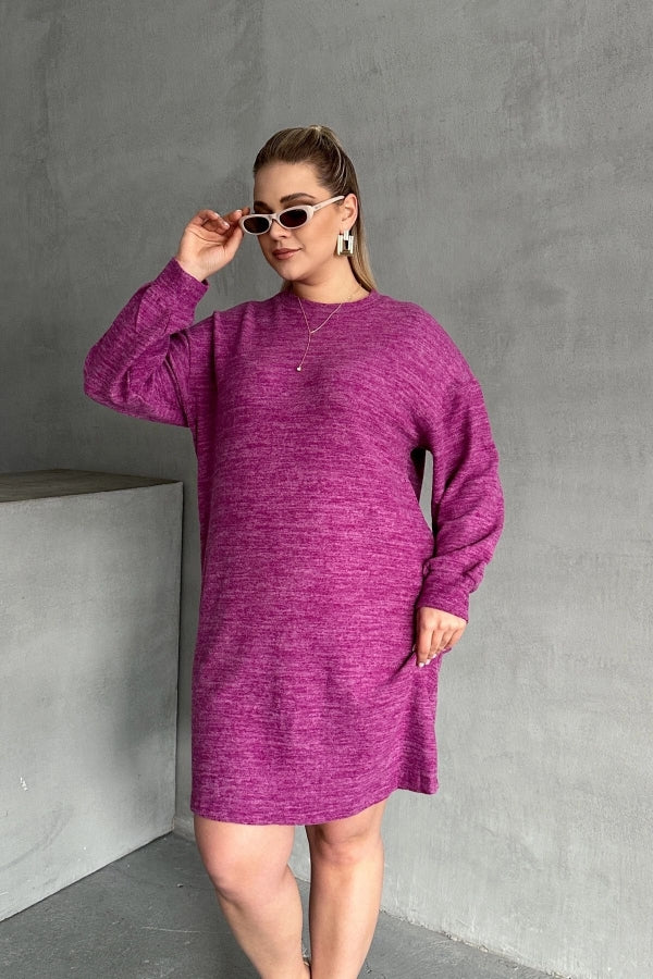 Büyük Beden Uzun Kollu Bisiklet Yaka Kırçıllı Elbise 84-162