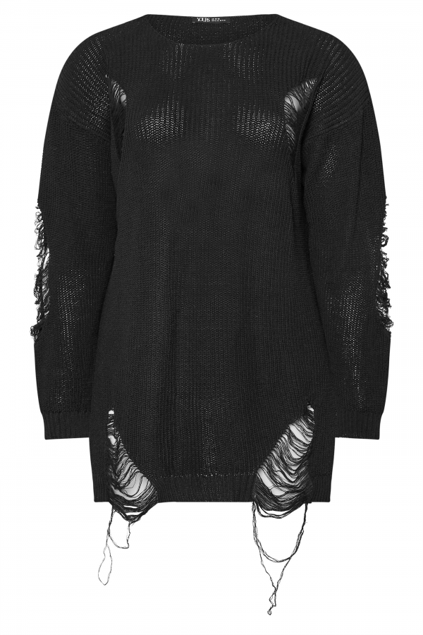 Büyük Beden Uzun Kollu Bisiklet Yaka Yırtık Detaylı Triko Kazak 303582
