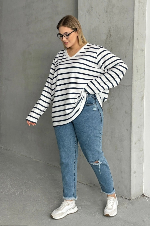 Büyük Beden Uzun Kollu Çizgili Mevsimlik T-shirt SD-1063