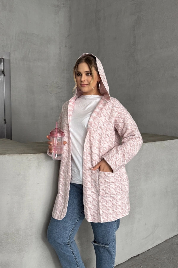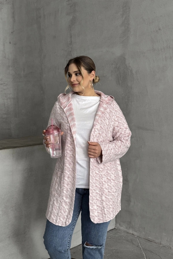 Büyük Beden Uzun Kollu Kapüşonlu Cepli Önü Kapamasız İnce Hırka 301794