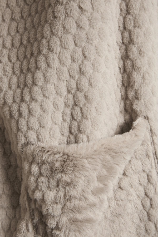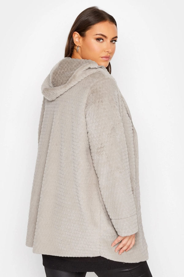 Büyük Beden Uzun Kollu Kapüşonlu Cepli Suni Kürk İnce Ceket 301652