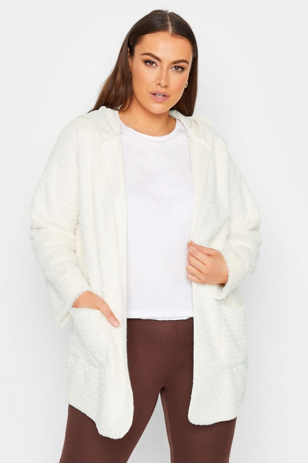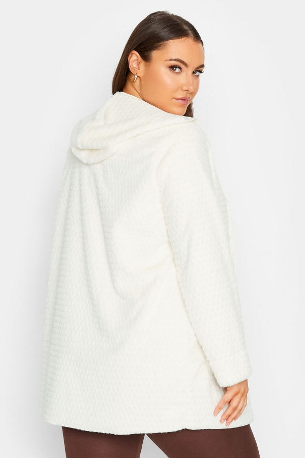 Büyük Beden Uzun Kollu Kapüşonlu Cepli Suni Kürk İnce Ceket 301653