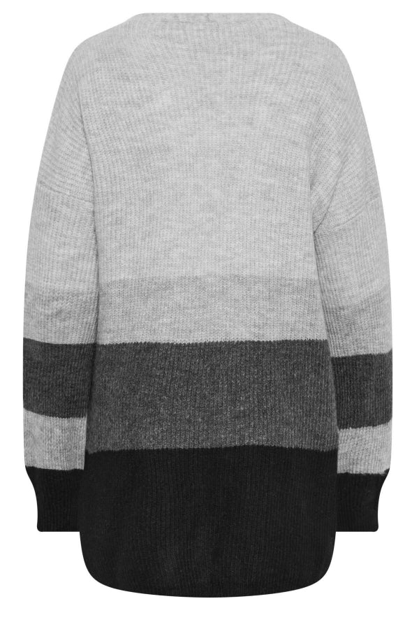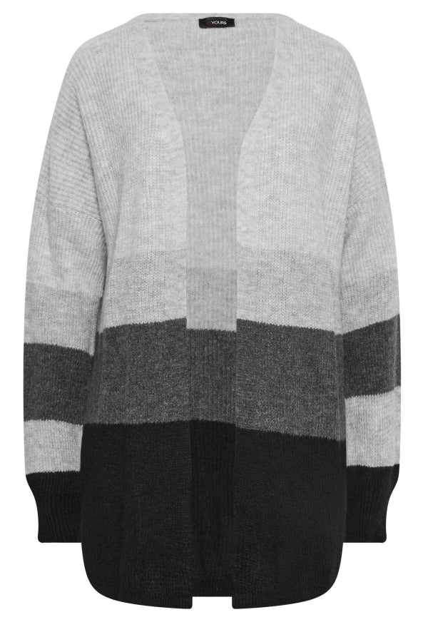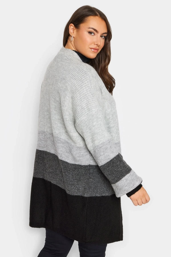Büyük Beden Uzun Kollu Renk Bloklu Önü Kapamasız Triko Hırka 301881