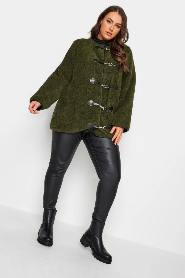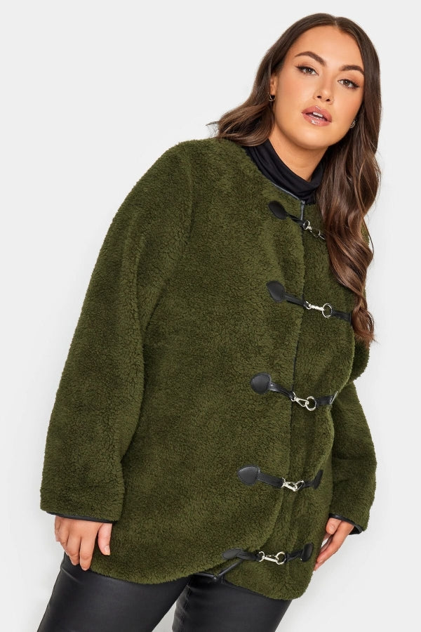 Büyük Beden Uzun Kollu Suni Kürk Geçişli Kısa Ceket 301819