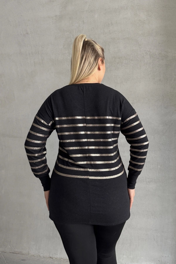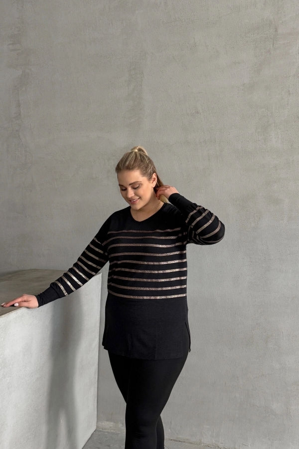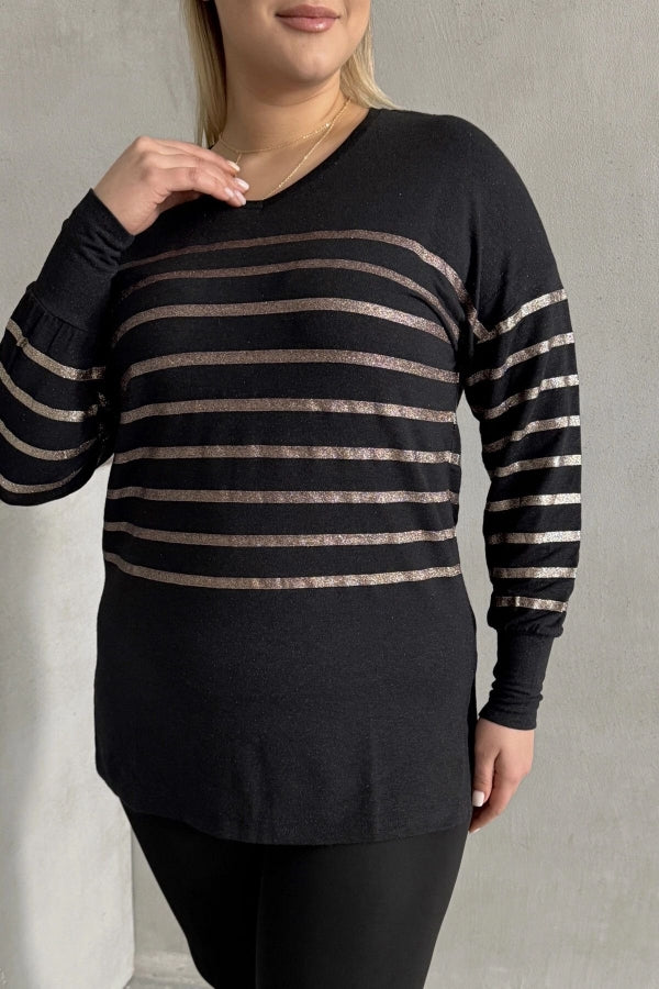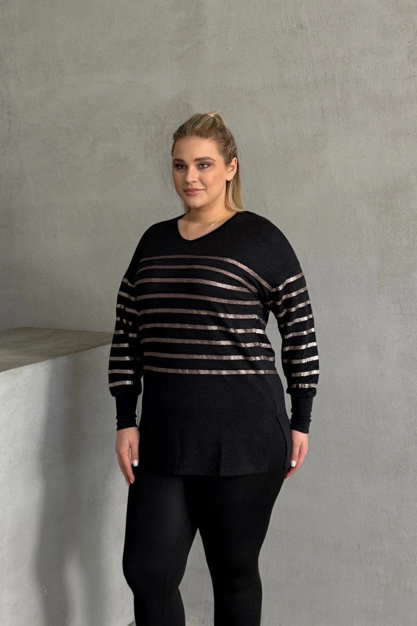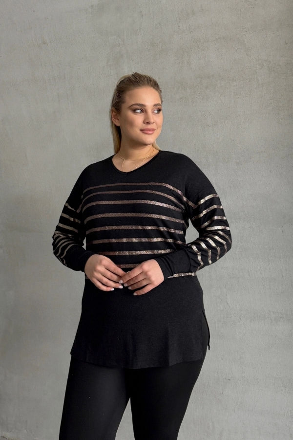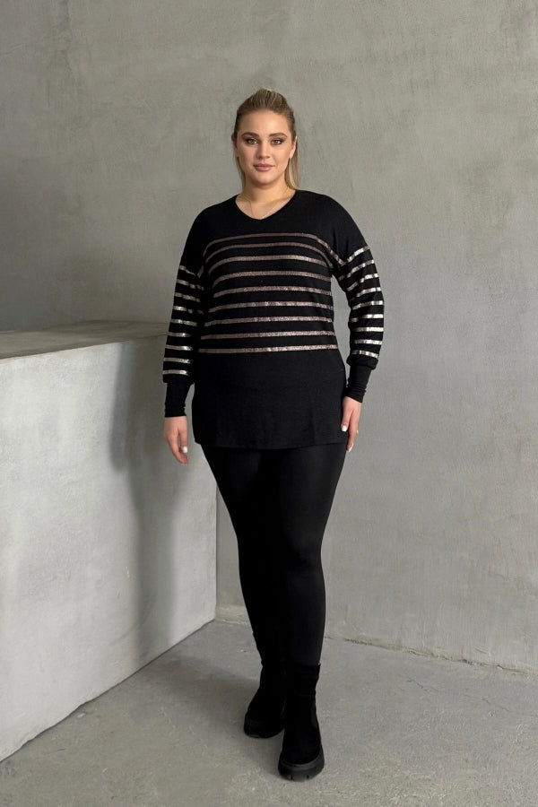 Büyük Beden Uzun Kollu V Yaka Bilekleri Lastikli Bluz 302910