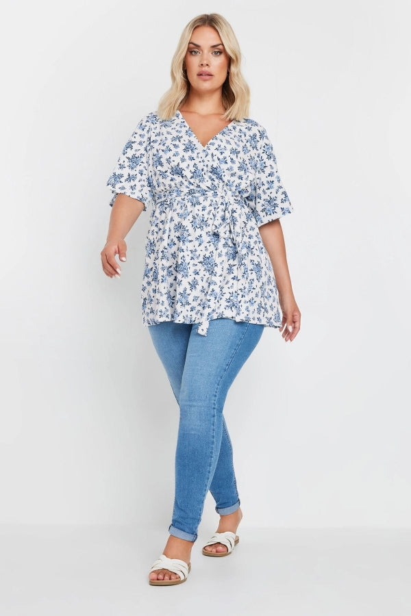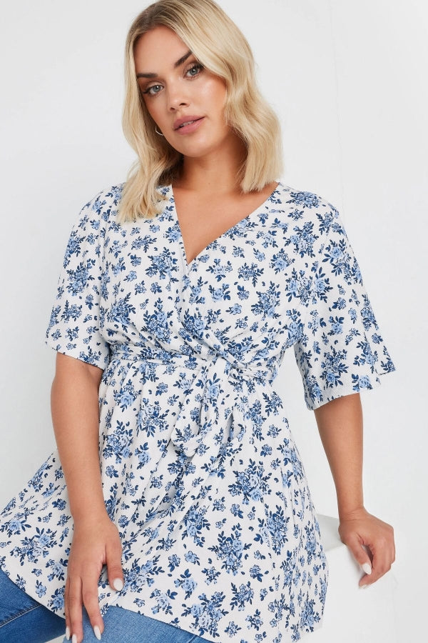 Büyük Beden V Yaka Bağlama Detaylı Desenli Kruvaze Bluz 321934