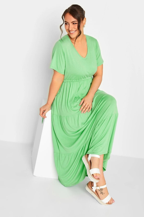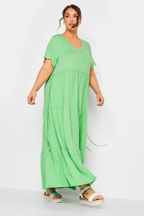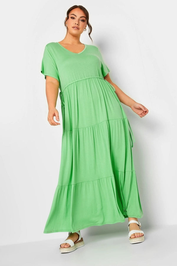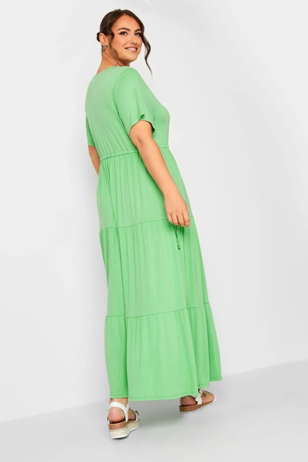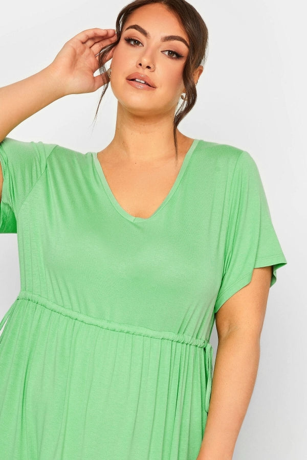 Büyük Beden V Yaka Beli Ayarlanabilir Yarım Kollu Uzun Elbise 215834