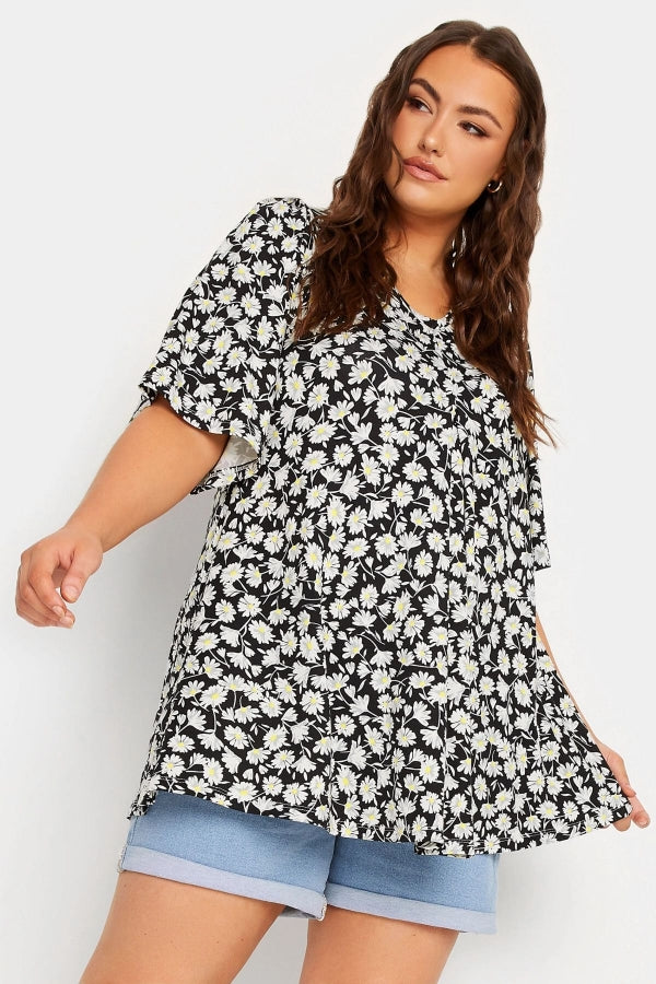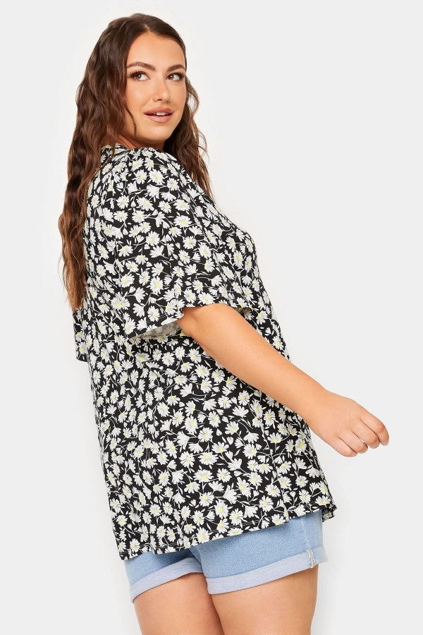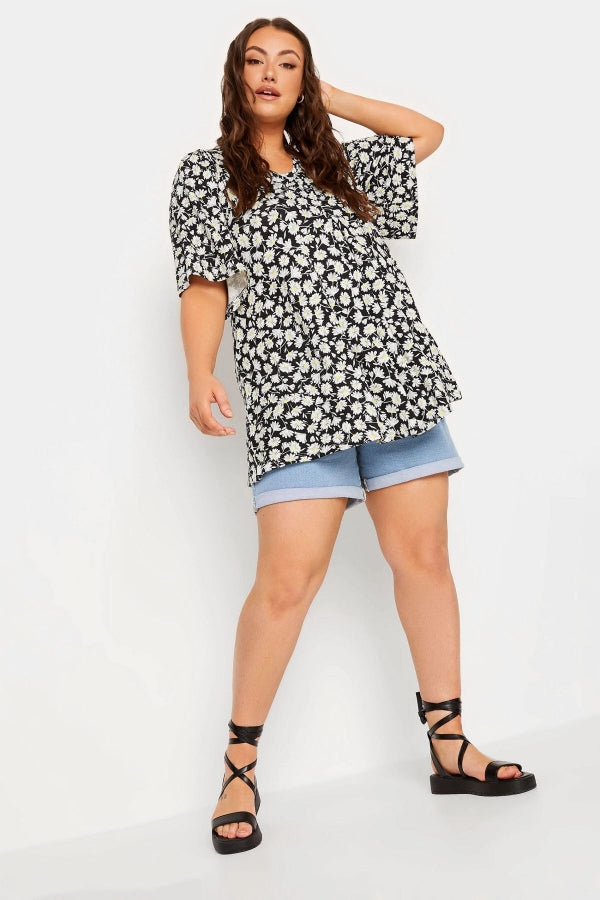 Büyük Beden V Yaka Çiçek Desenli Asimetrik Kesim Likralı Bluz 320978