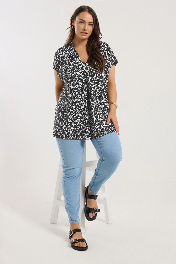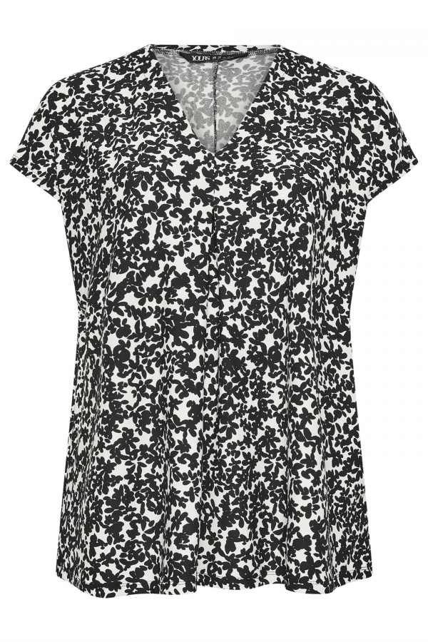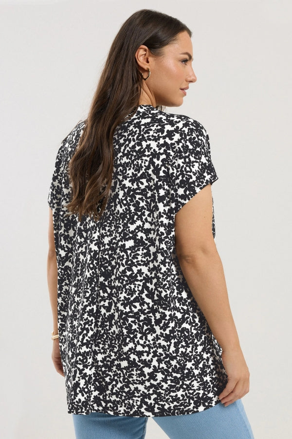 Büyük Beden V Yaka Çiçek Desenli Kısa Kollu Bluz 321704