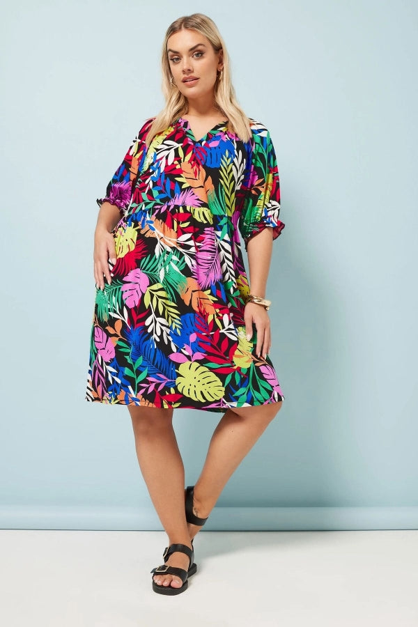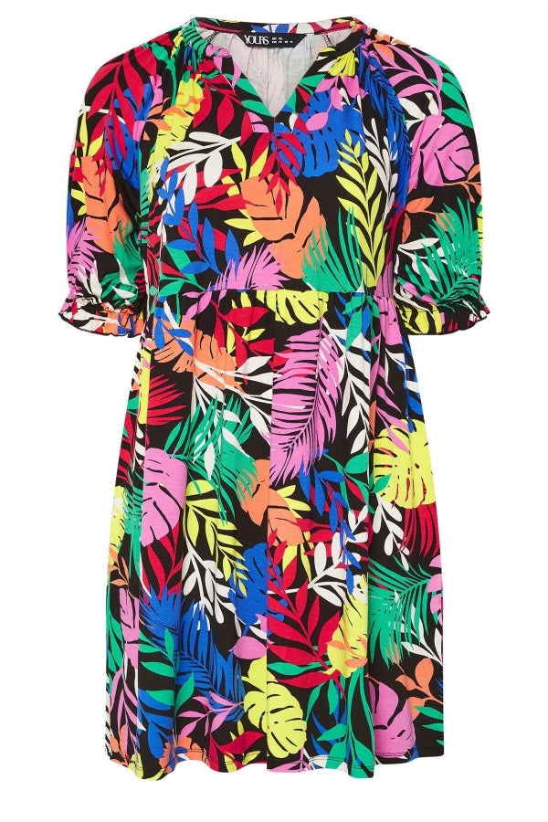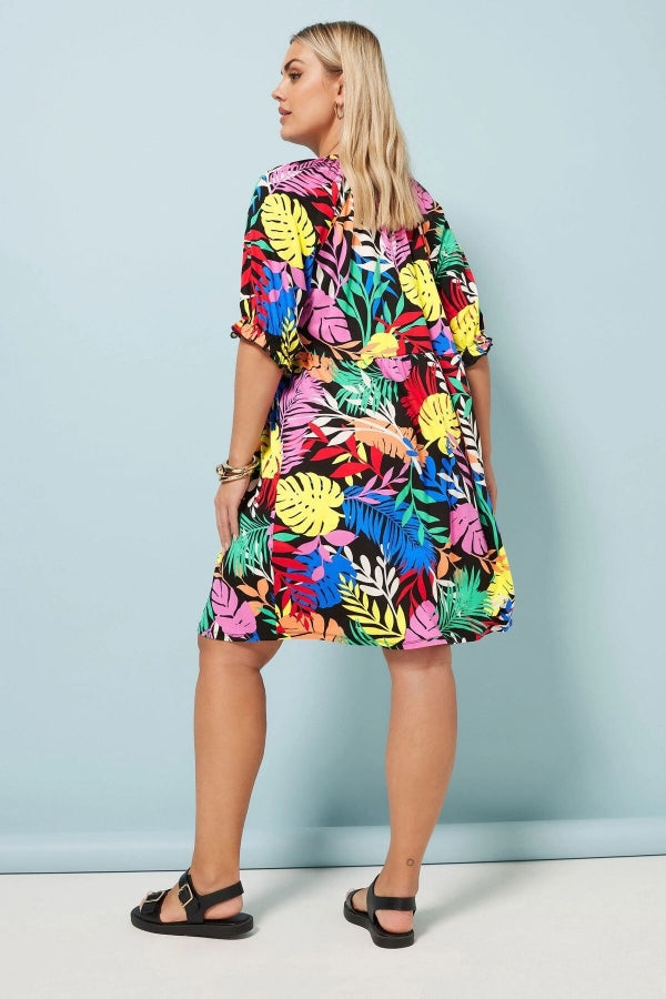 Büyük Beden V Yaka Çiçek Desenli Mini Elbise 304070