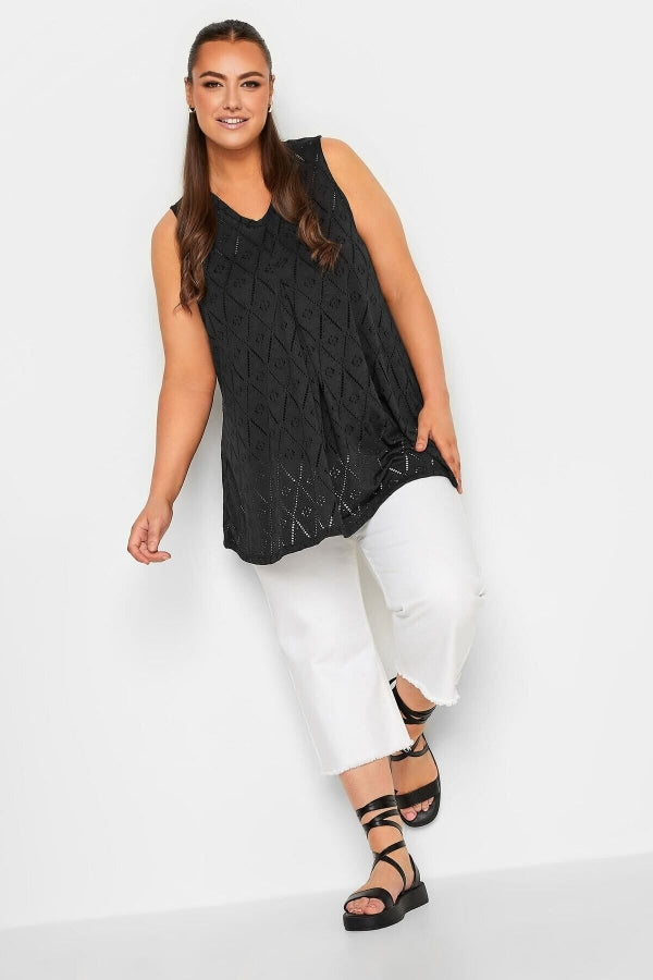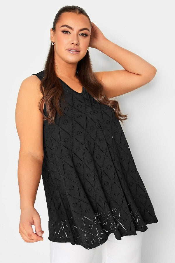 Büyük Beden V Yaka Dantel Detaylı Astarsız Sıfır Kollu Bluz 302402