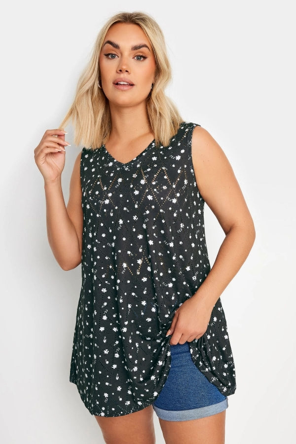 Büyük Beden V Yaka Dantel Detaylı Astarsız Sıfır Kollu Bluz 303245