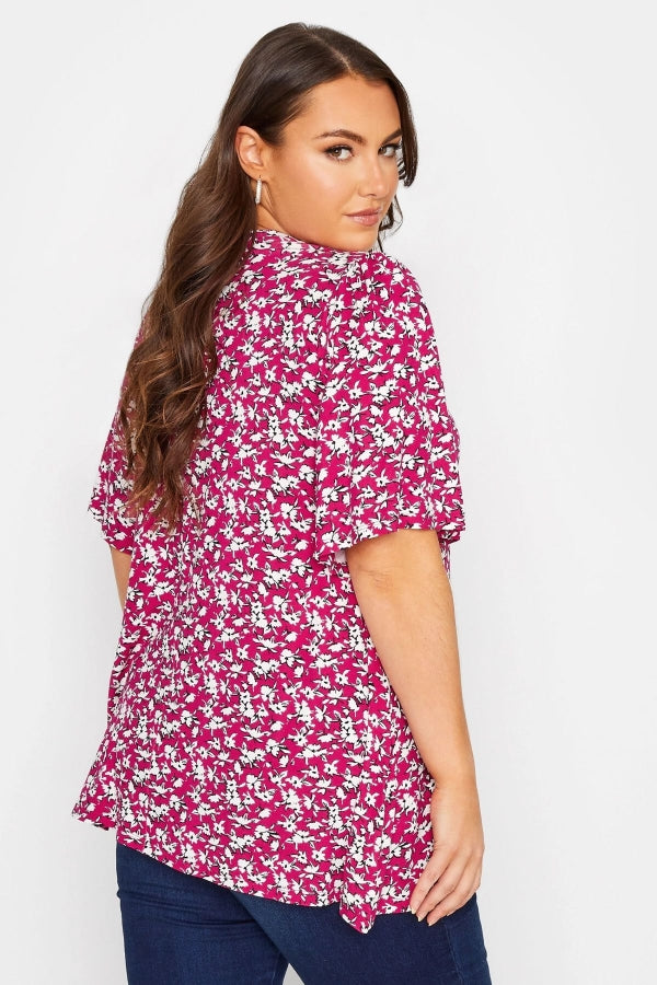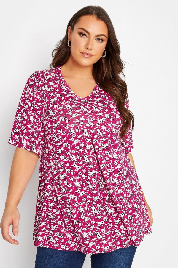 Büyük Beden V Yaka Desenli Asimetrik Kesim Likralı Bluz 301694