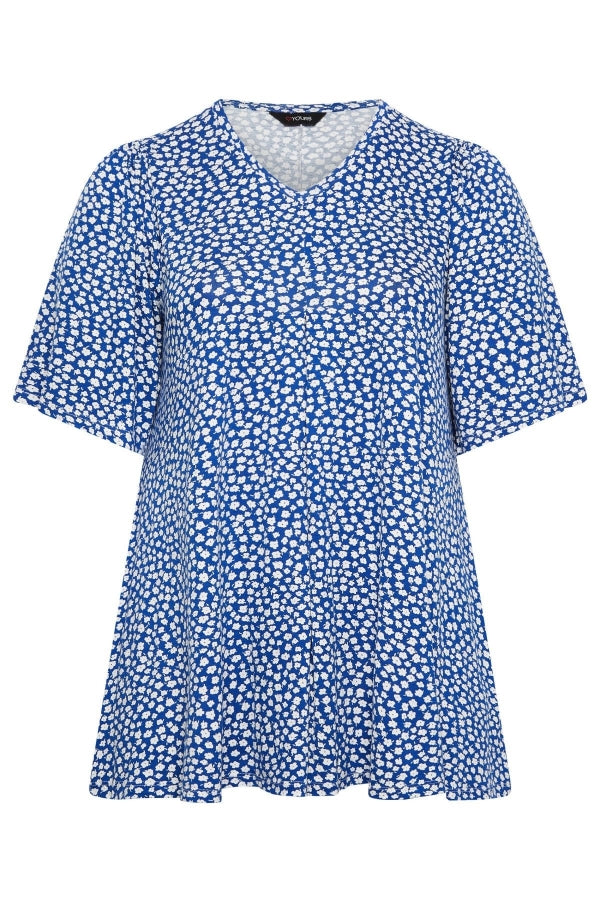Büyük Beden V Yaka Desenli Asimetrik Kesim Likralı Bluz 301696