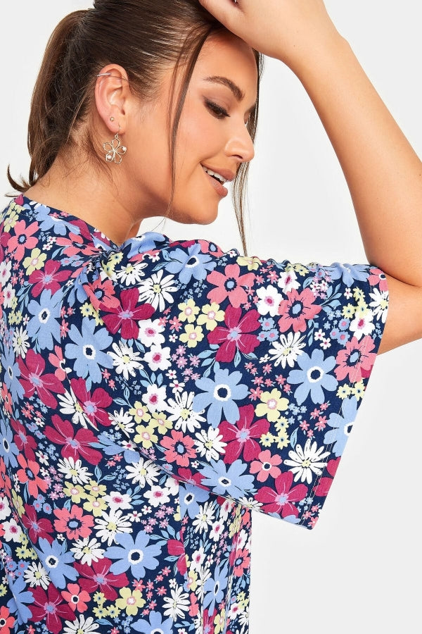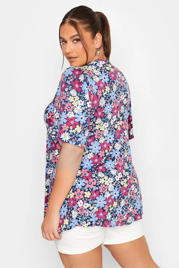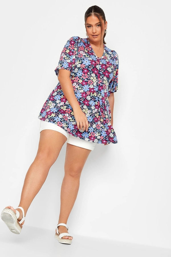 Büyük Beden V Yaka Desenli Asimetrik Kesim Likralı Bluz 302388