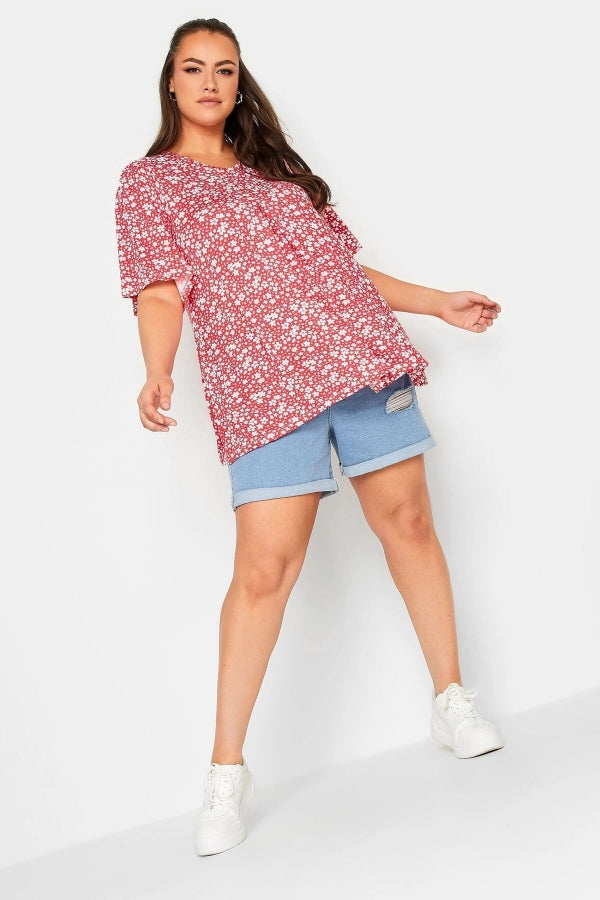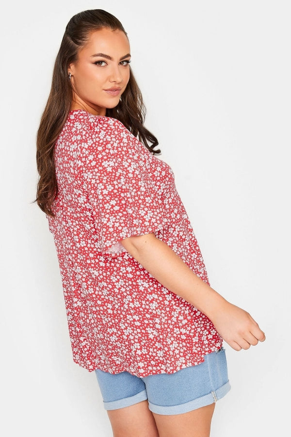 Büyük Beden V Yaka Desenli Asimetrik Kesim Likralı Bluz 302389