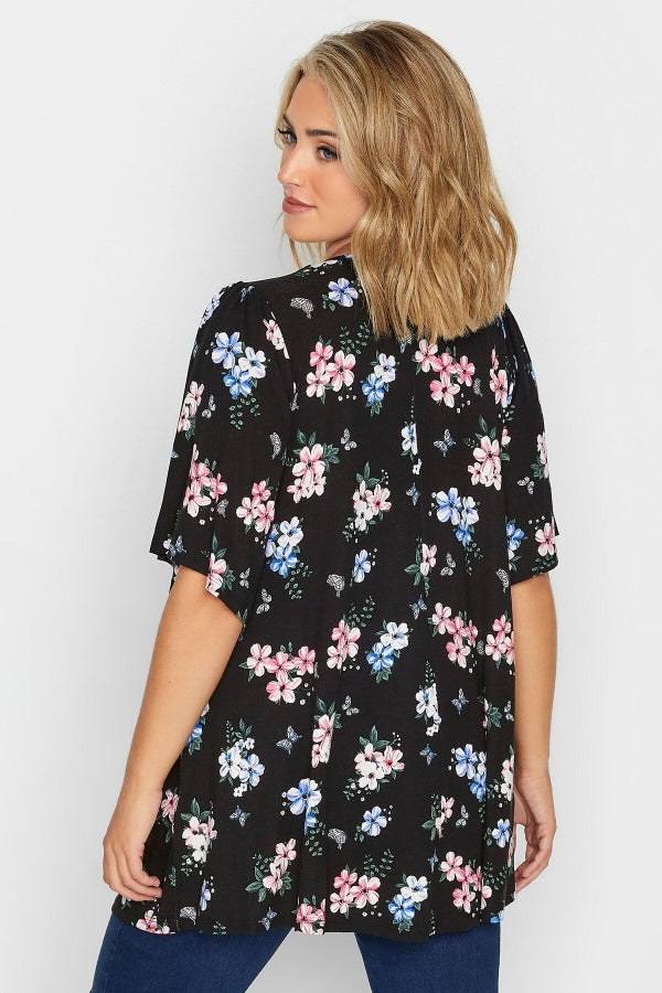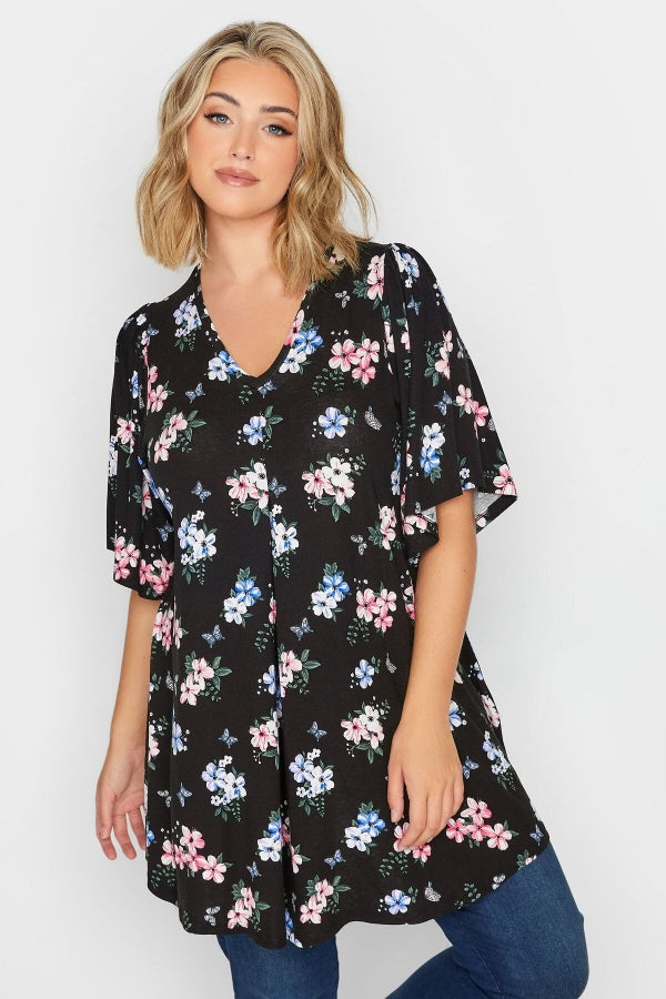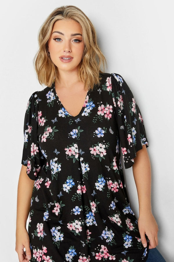 Büyük Beden V Yaka Desenli Asimetrik Kesim Likralı Bluz 302479
