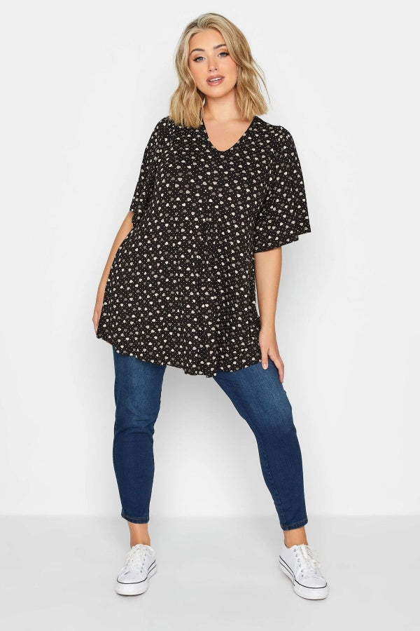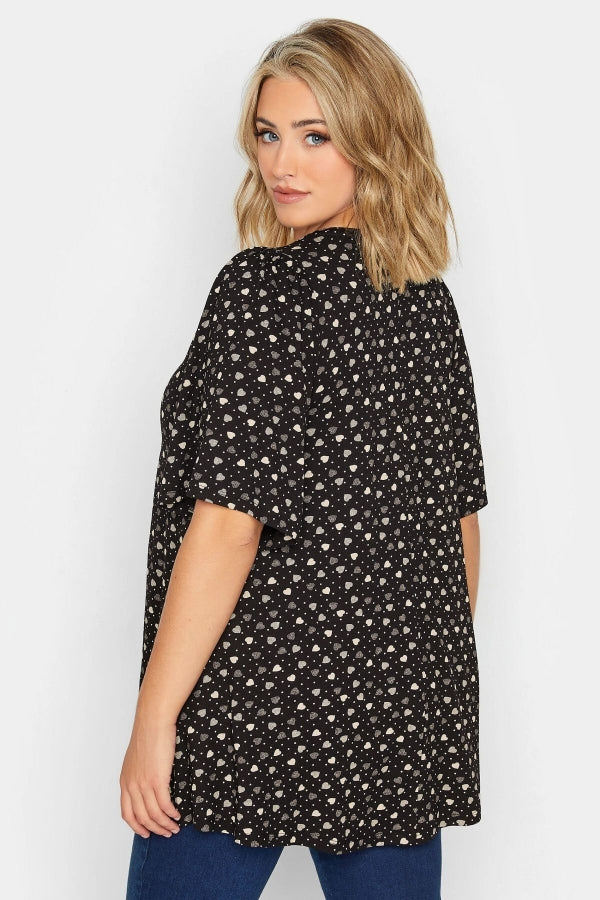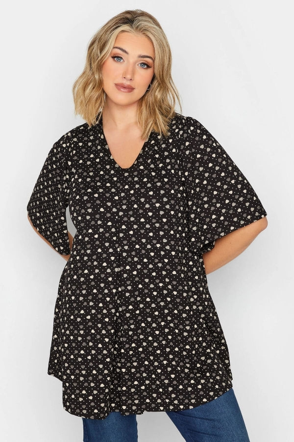 Büyük Beden V Yaka Desenli Asimetrik Kesim Likralı Bluz 302481