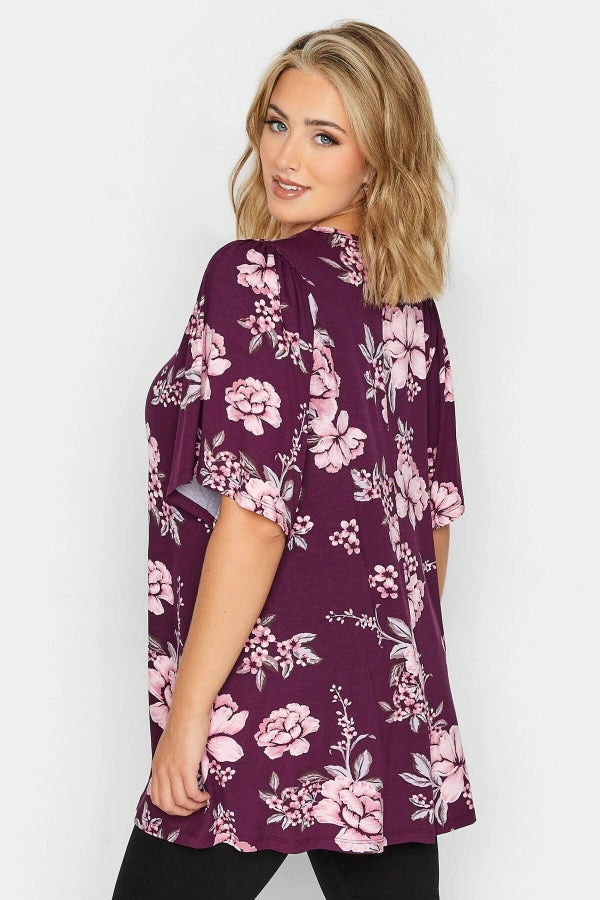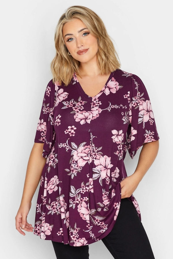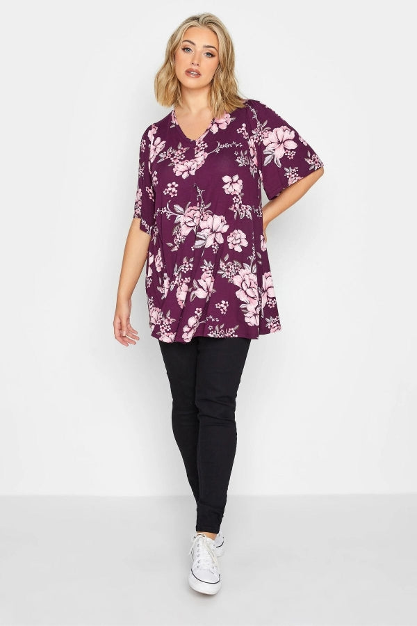 Büyük Beden V Yaka Desenli Asimetrik Kesim Likralı Bluz 302482