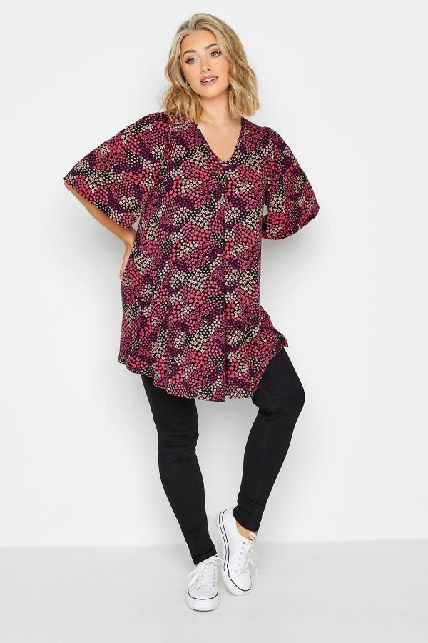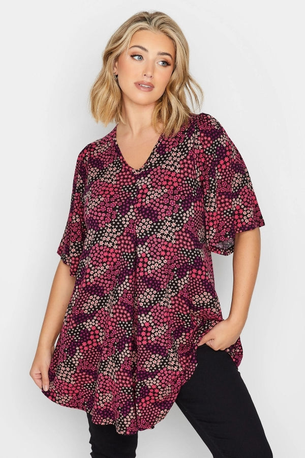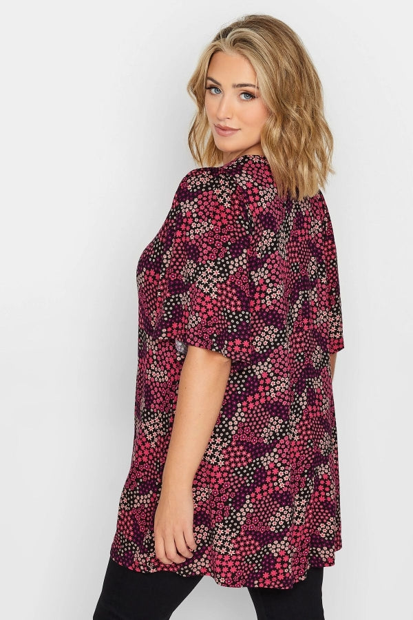 Büyük Beden V Yaka Desenli Asimetrik Kesim Likralı Bluz 302483