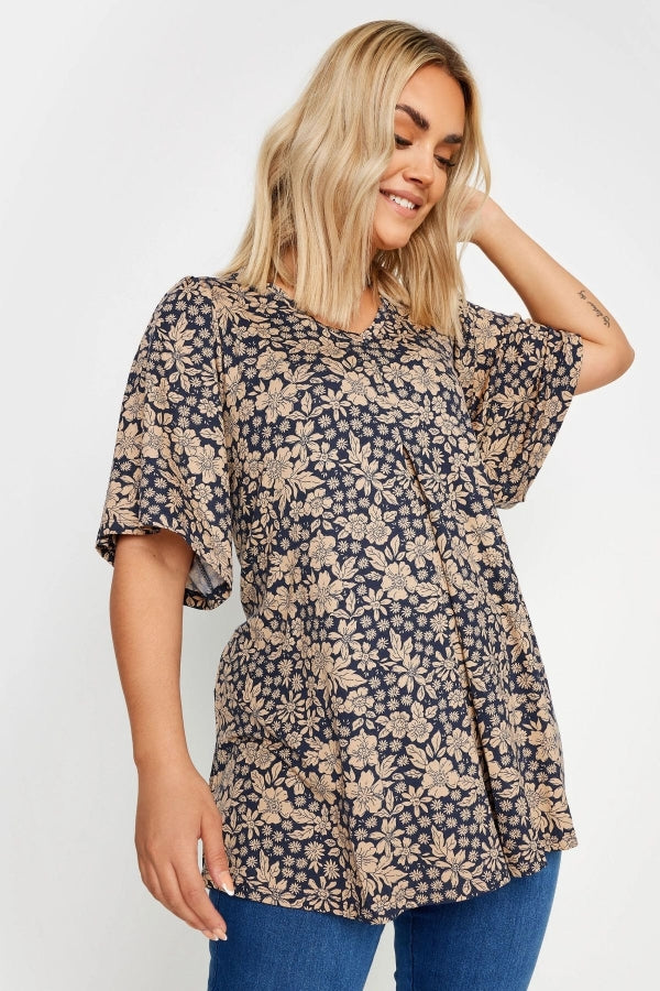 Büyük Beden V Yaka Desenli Asimetrik Kesim Likralı Bluz 303250