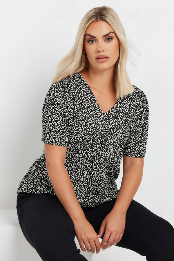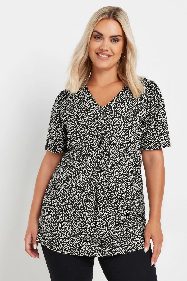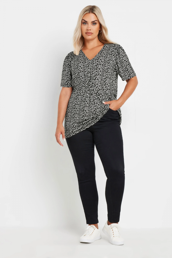 Büyük Beden V Yaka Desenli Asimetrik Kesim Likralı Bluz 303372