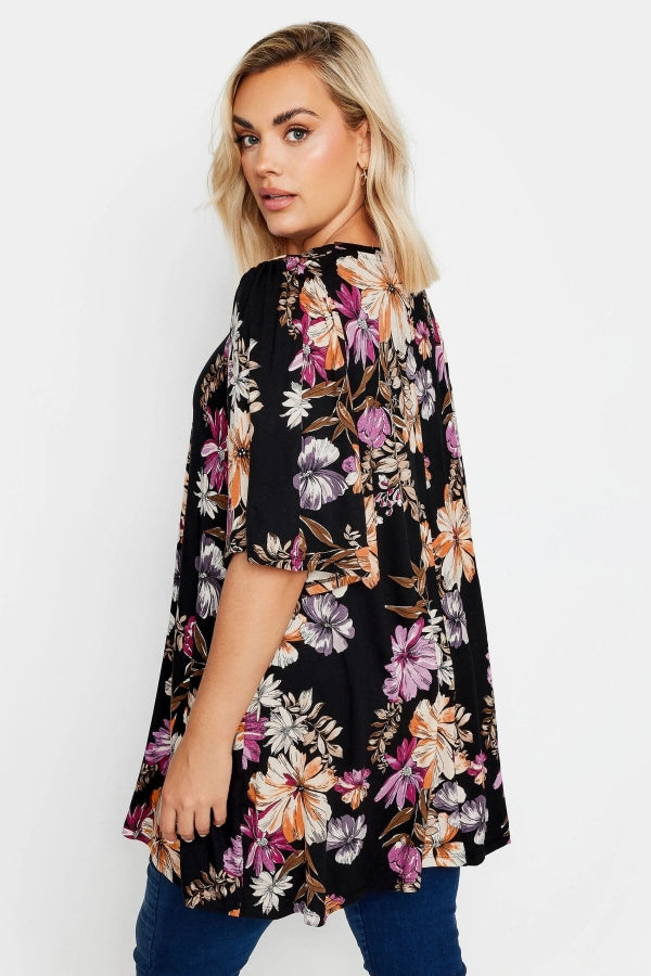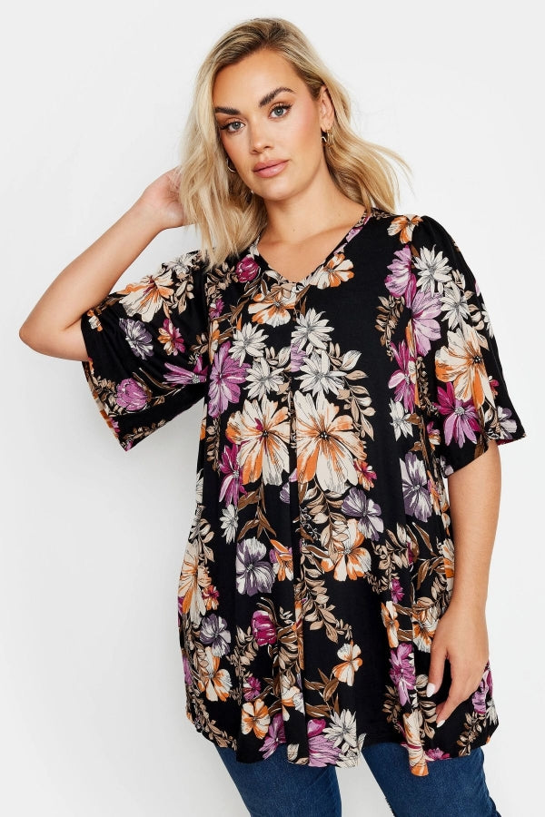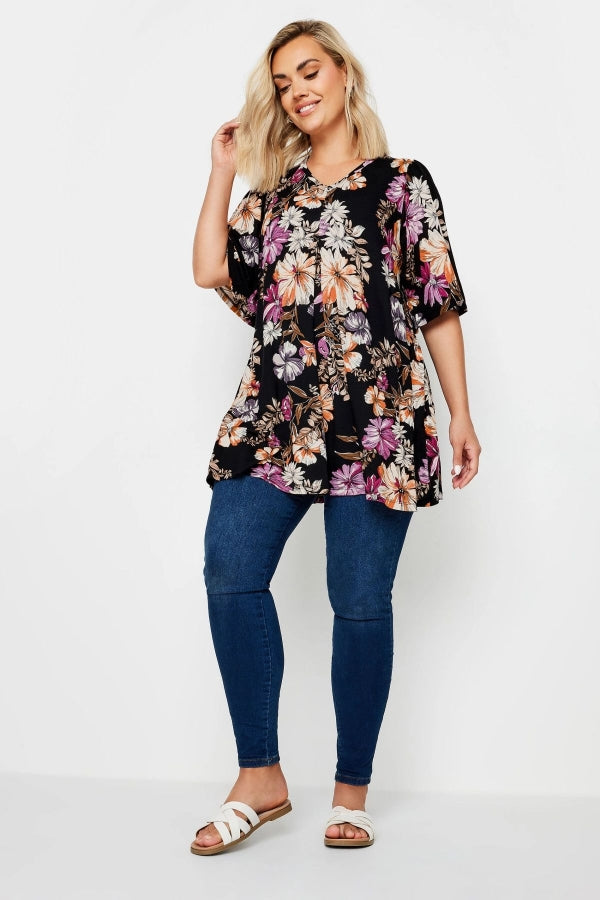 Büyük Beden V Yaka Desenli Asimetrik Kesim Likralı Bluz 303373