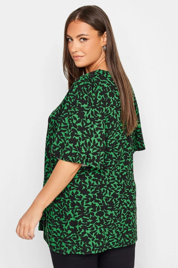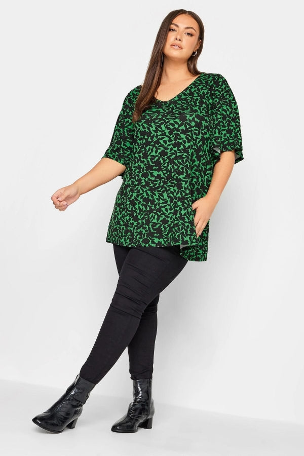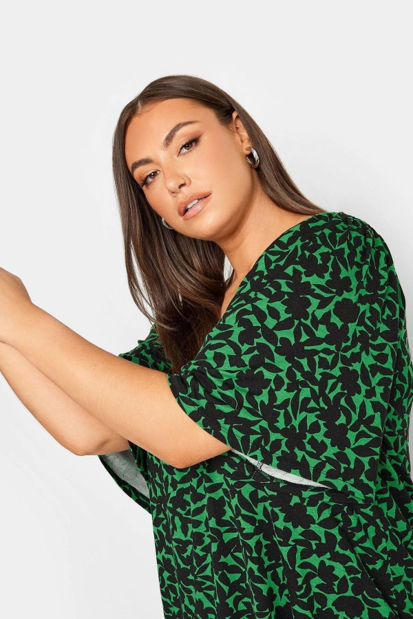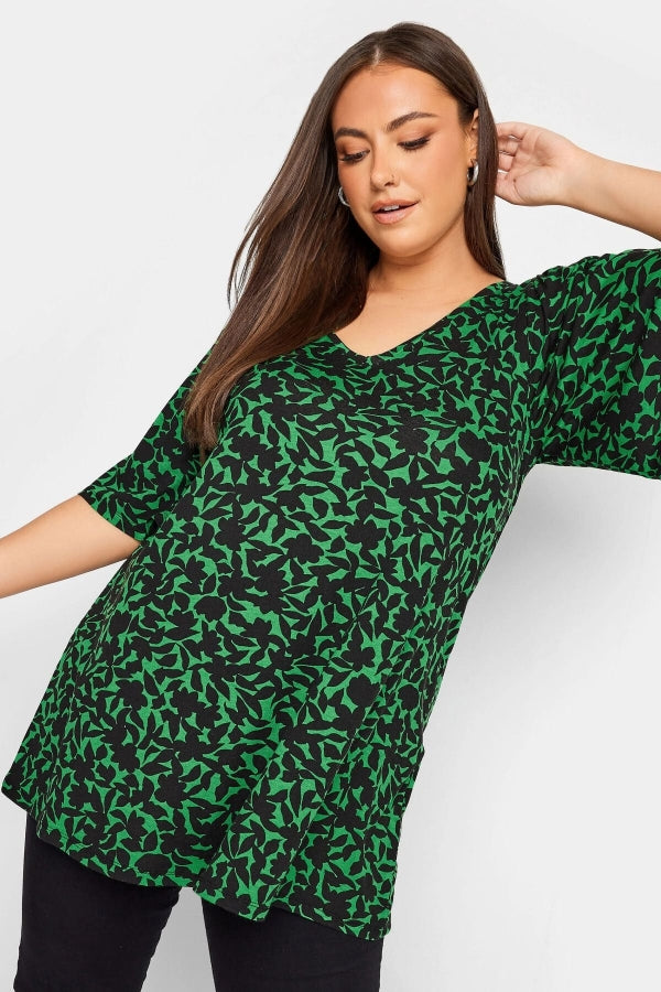 Büyük Beden V Yaka Desenli Asimetrik Kesim Likralı Bluz 321127