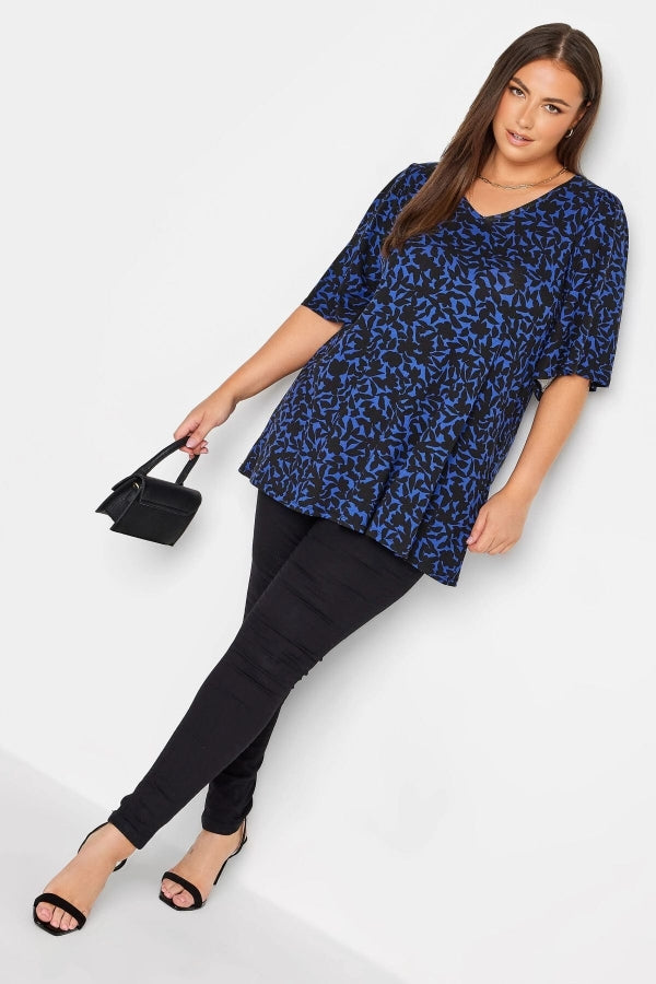 Büyük Beden V Yaka Desenli Asimetrik Kesim Likralı Bluz 321128