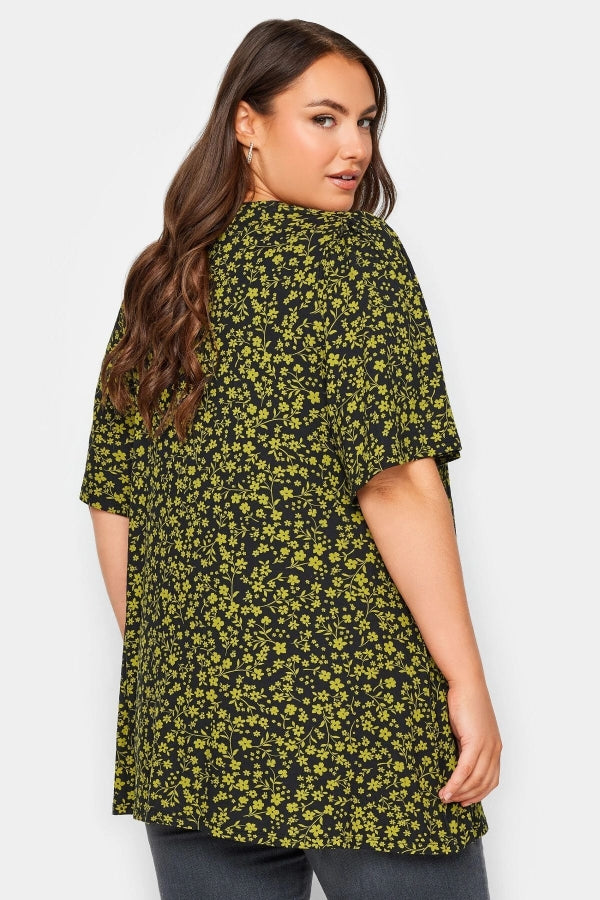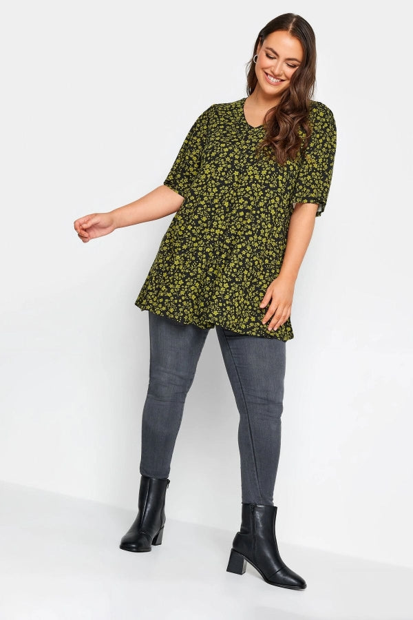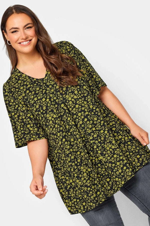 Büyük Beden V Yaka Desenli Asimetrik Kesim Likralı Bluz 321254