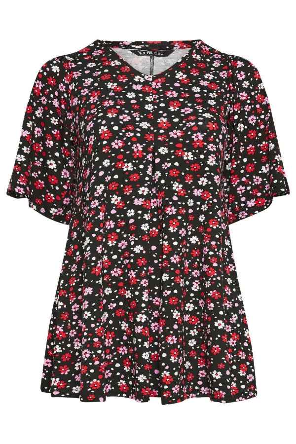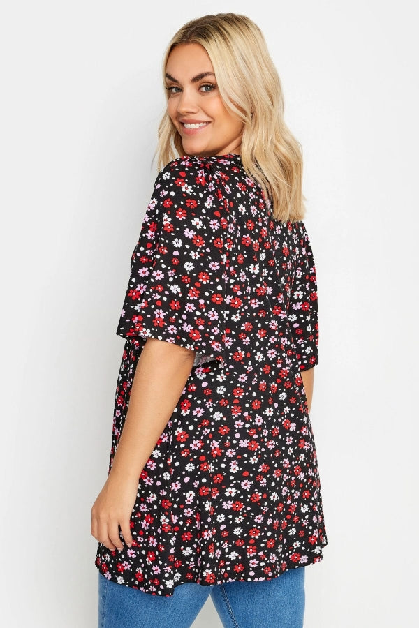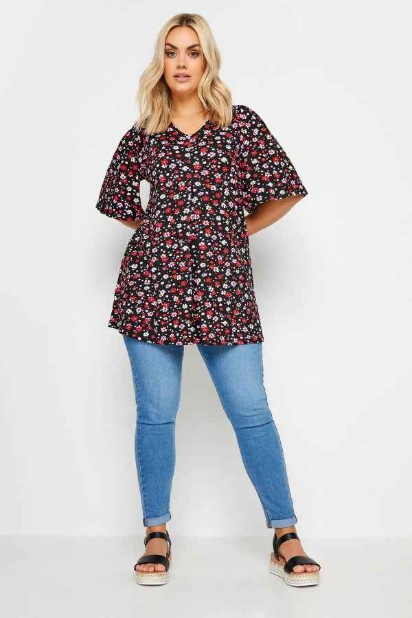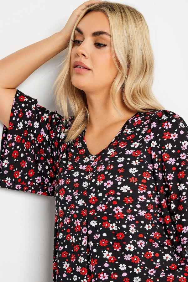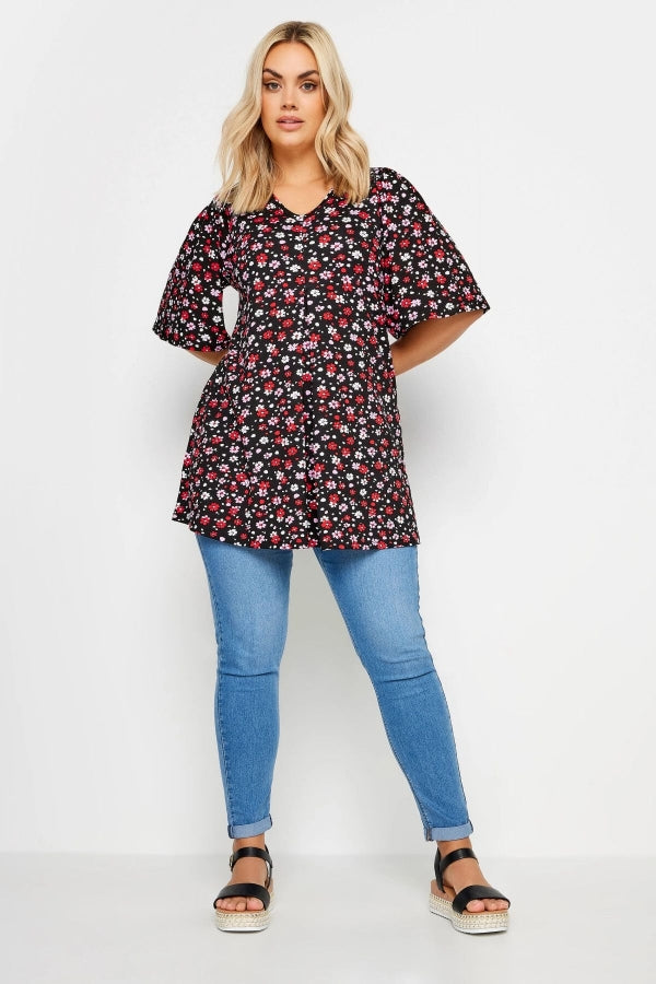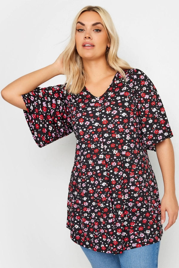 Büyük Beden V Yaka Desenli Asimetrik Kesim Likralı Bluz 321674