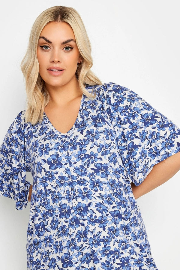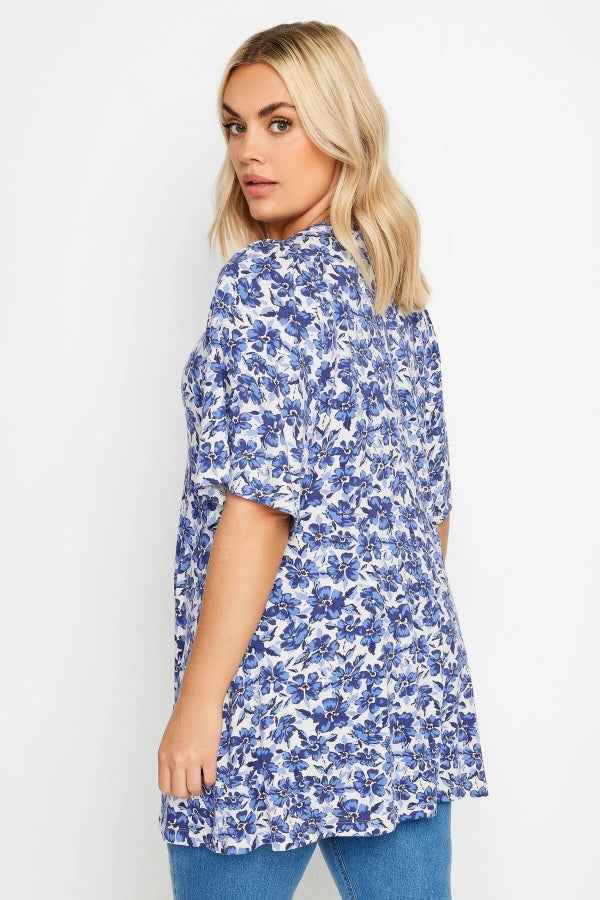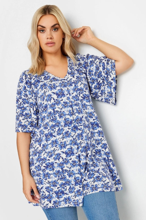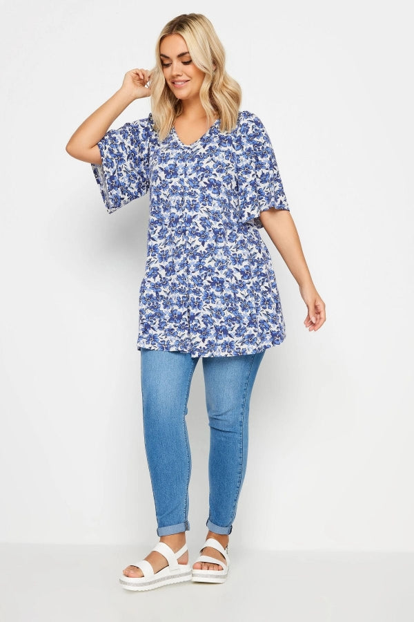 Büyük Beden V Yaka Desenli Asimetrik Kesim Likralı Bluz 321675