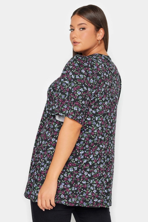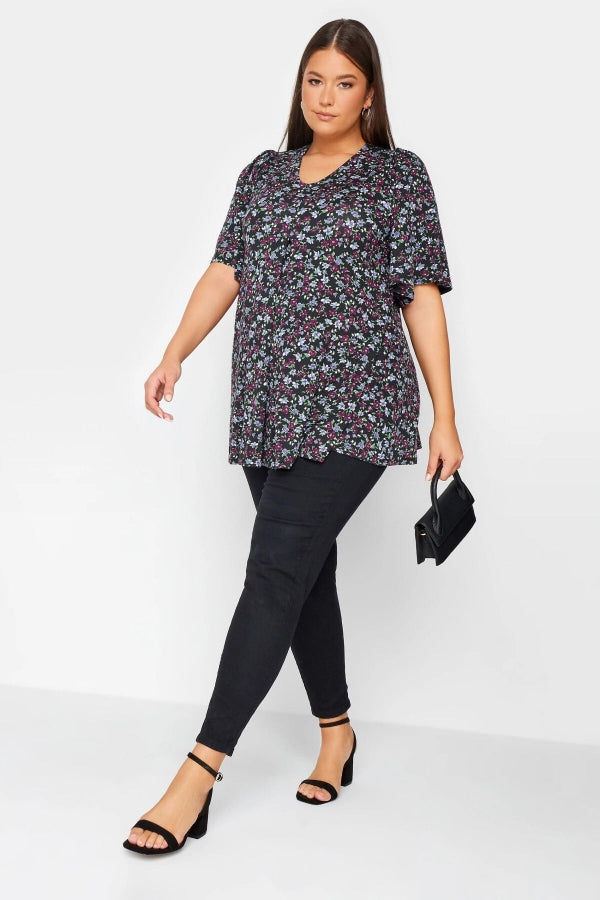 Büyük Beden V Yaka Desenli Asimetrik Kesim Yarım Kollu Likralı Bluz 321255