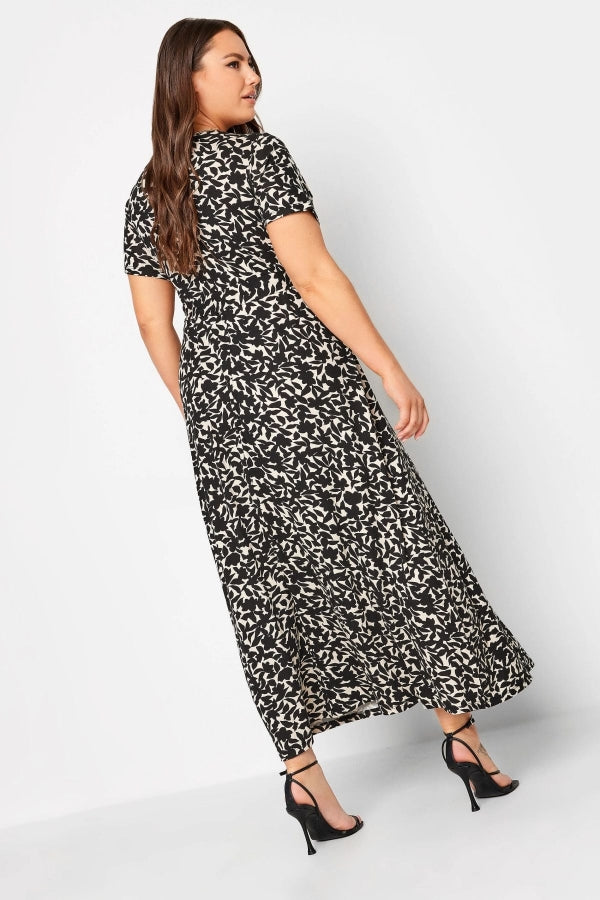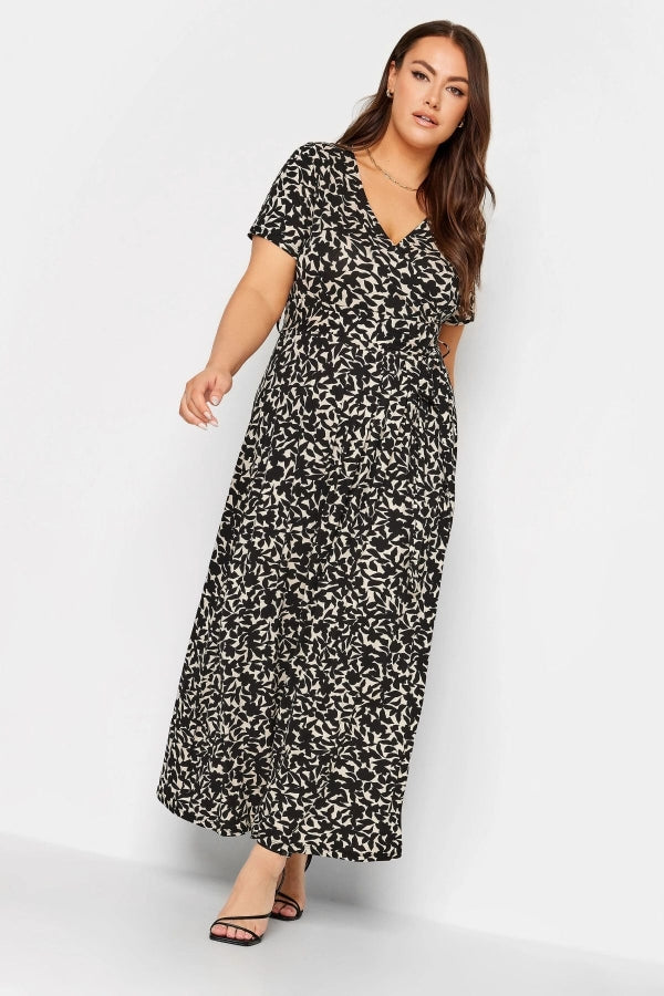 Büyük Beden V Yaka Desenli Kuşaklı Likralı Yarım Kol Anvelop Elbise 137587