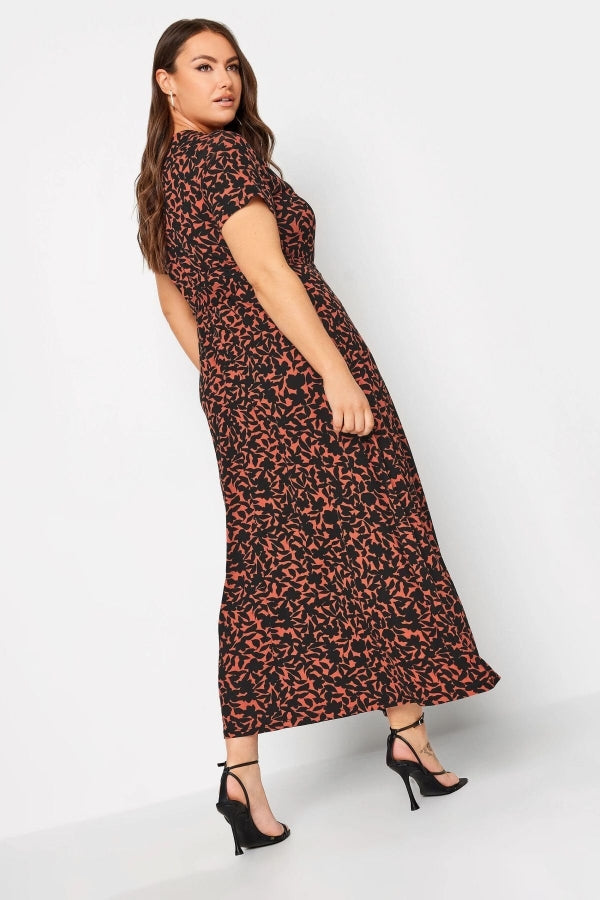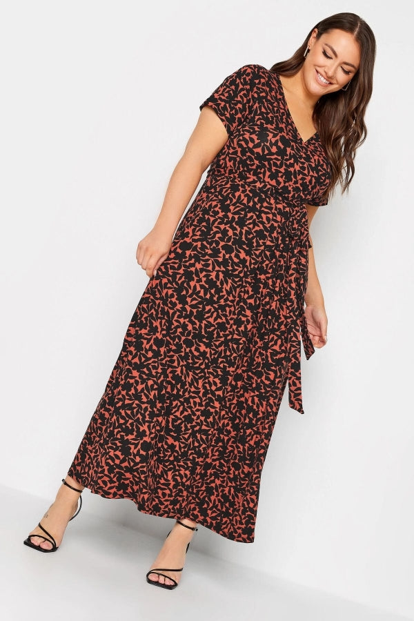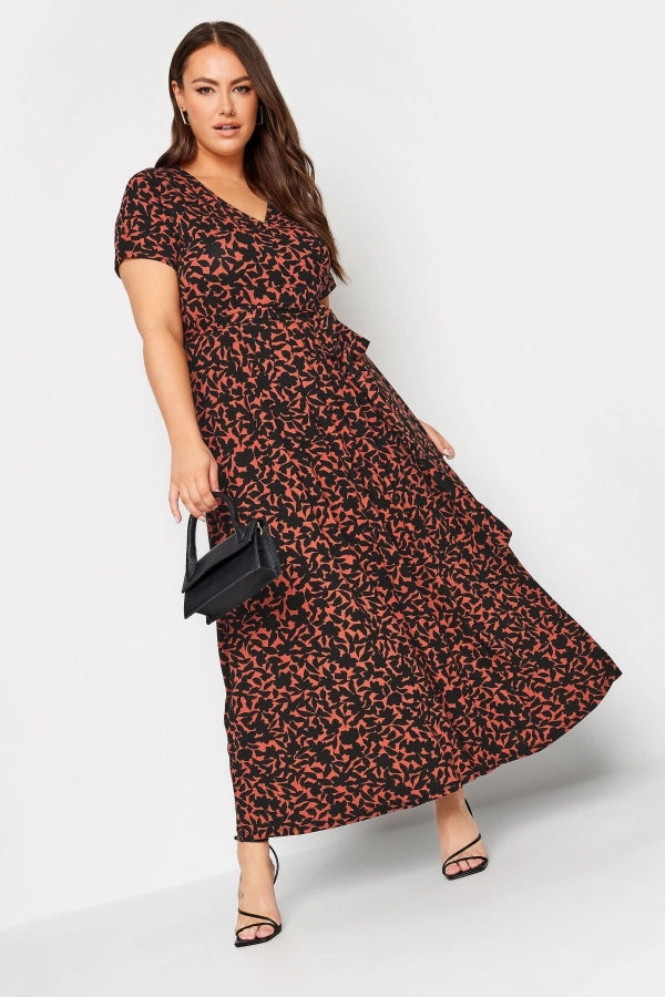 Büyük Beden V Yaka Desenli Kuşaklı Likralı Yarım Kol Anvelop Elbise 137588