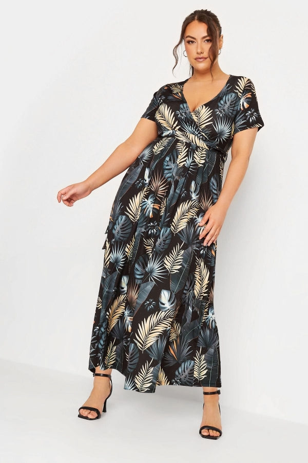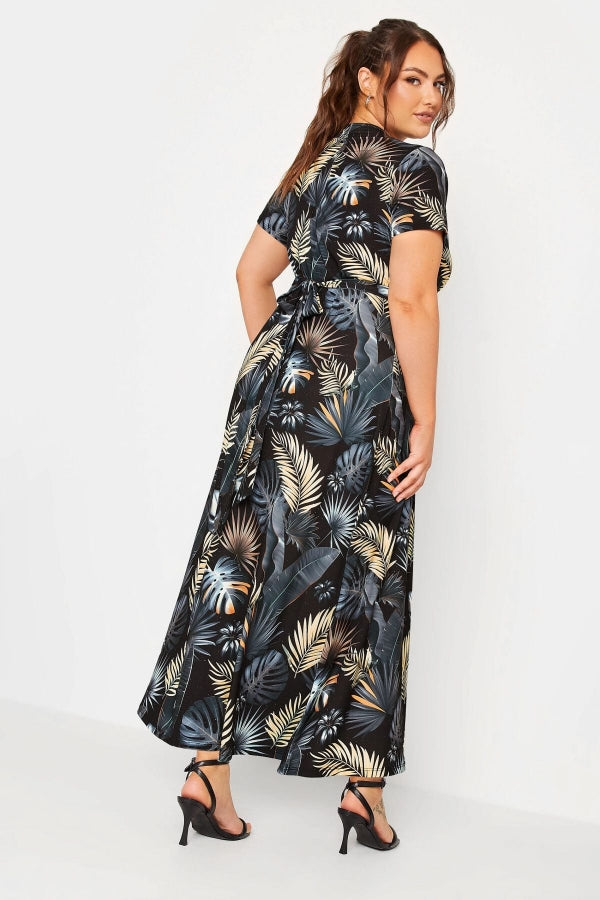 Büyük Beden V Yaka Desenli Kuşaklı Likralı Yarım Kol Anvelop Elbise 302153