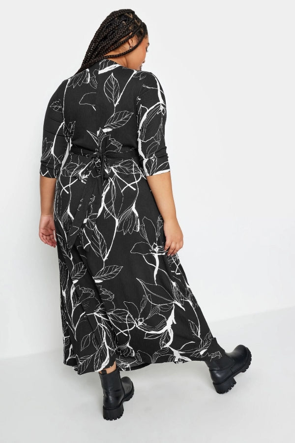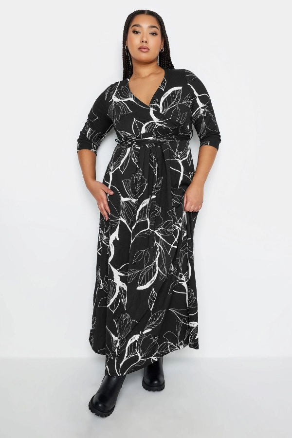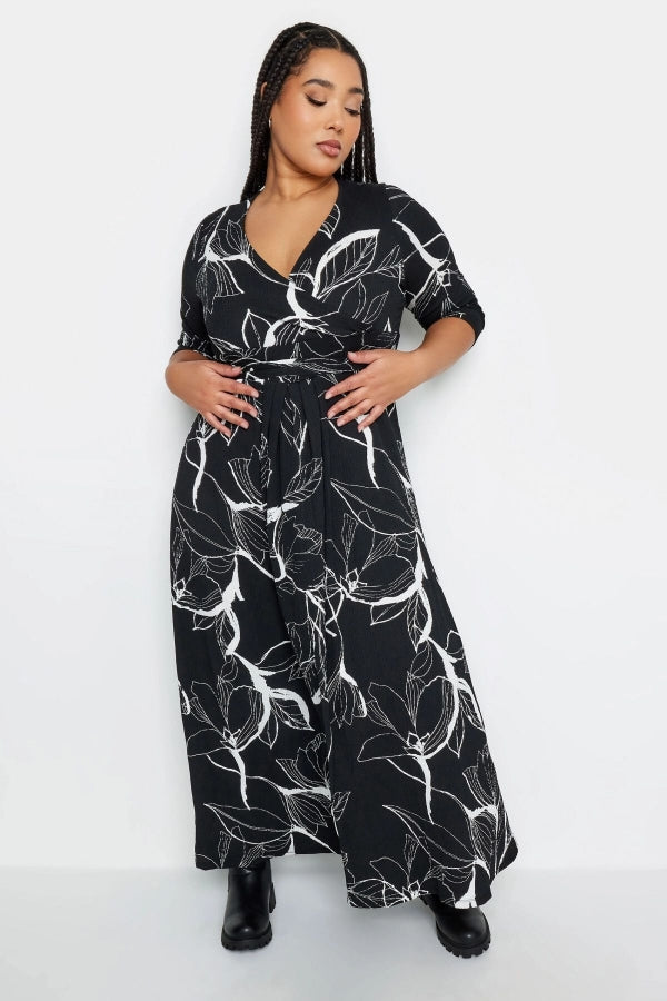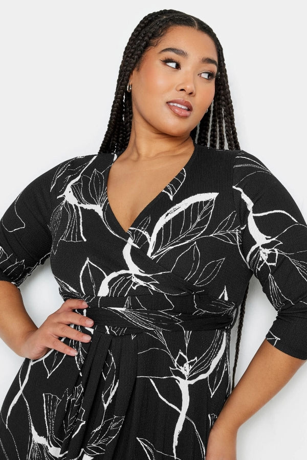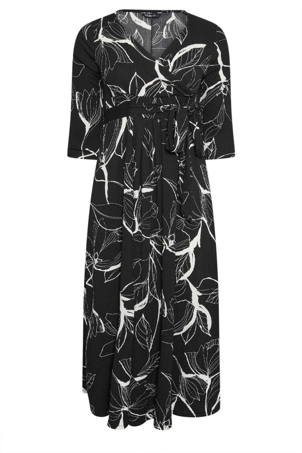 Büyük Beden V Yaka Desenli Kuşaklı Likralı Yarım Kol Anvelop Elbise 302692