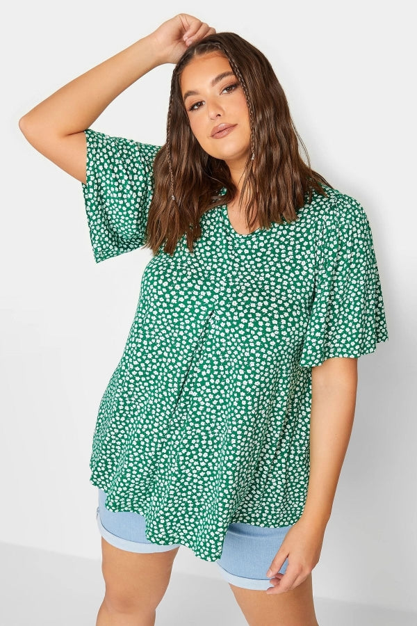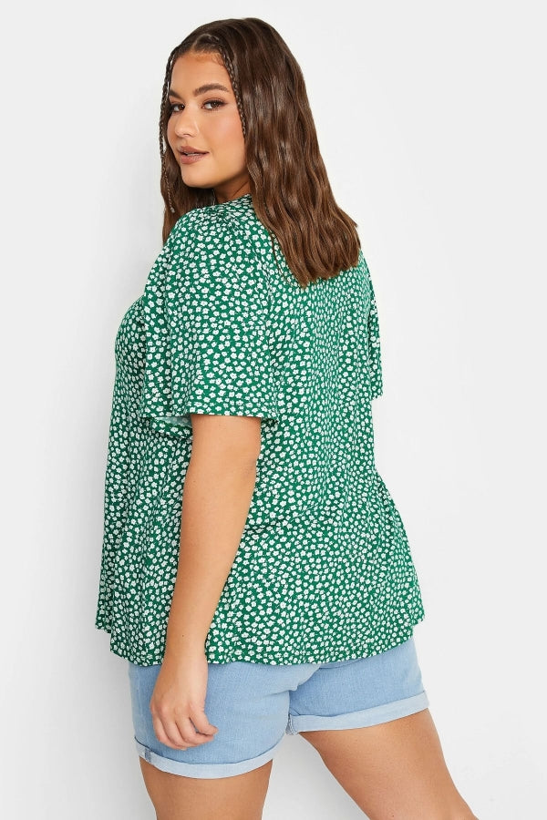 Büyük Beden V Yaka Desensiz Asimetrik Kesim Likralı Bluz 302236