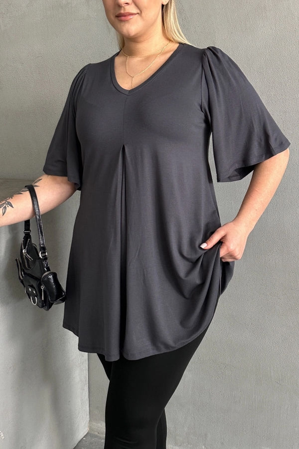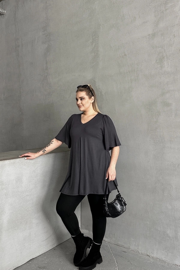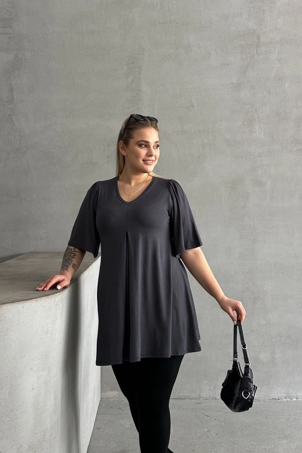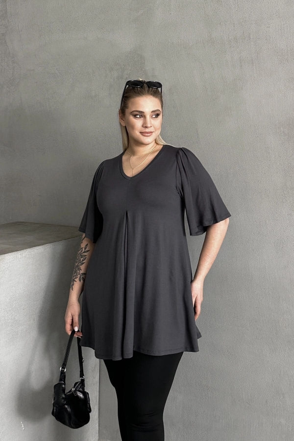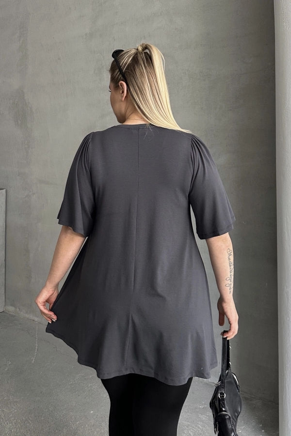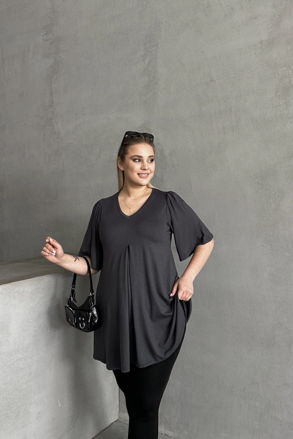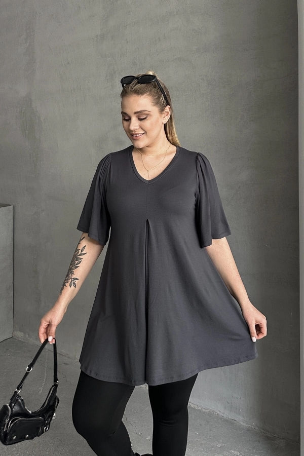 Büyük Beden V Yaka Desensiz Asimetrik Kesim Likralı Bluz MDL-3