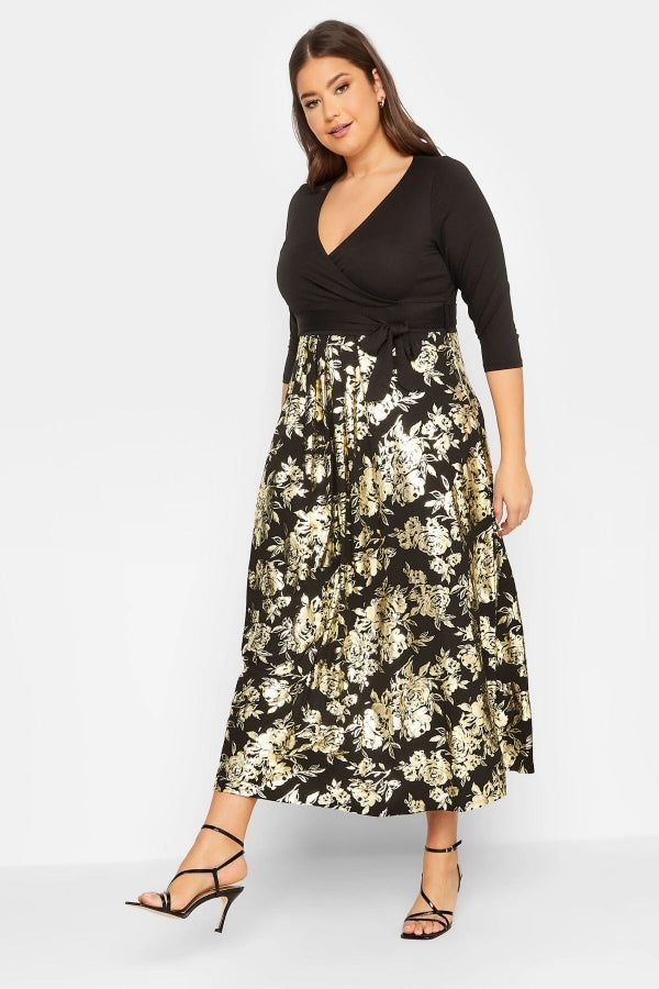 Büyük Beden V Yaka Fakir Kol Parlak Etekli Kuşaklı Elbise 301807