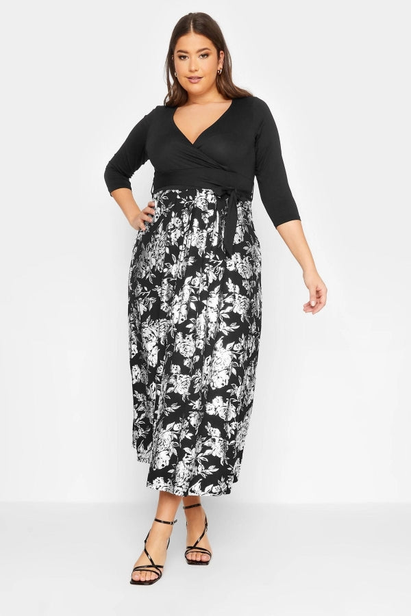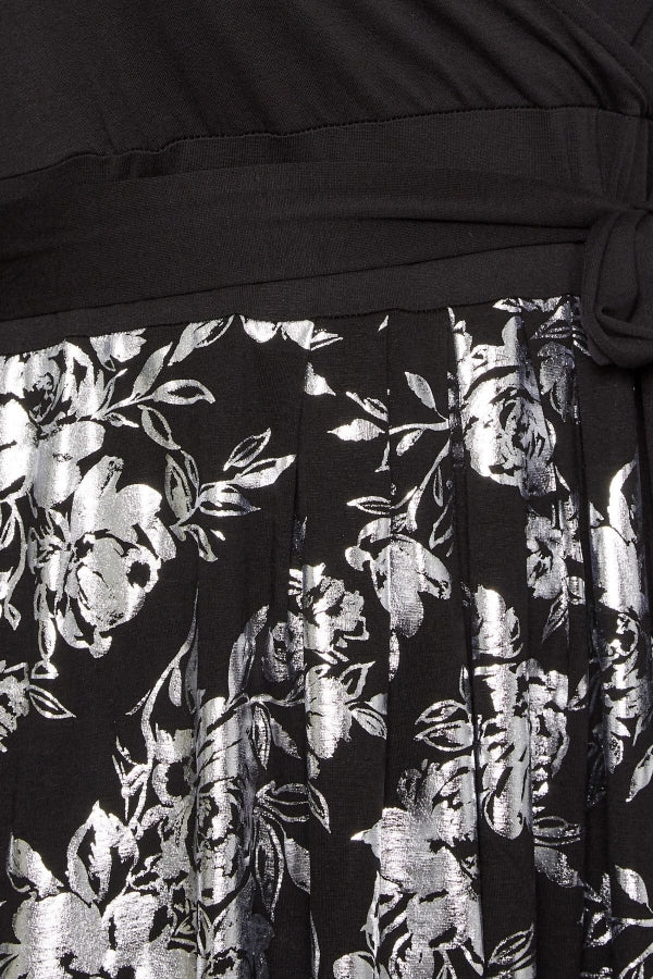 Büyük Beden V Yaka Fakir Kol Parlak Etekli Kuşaklı Elbise 301808
