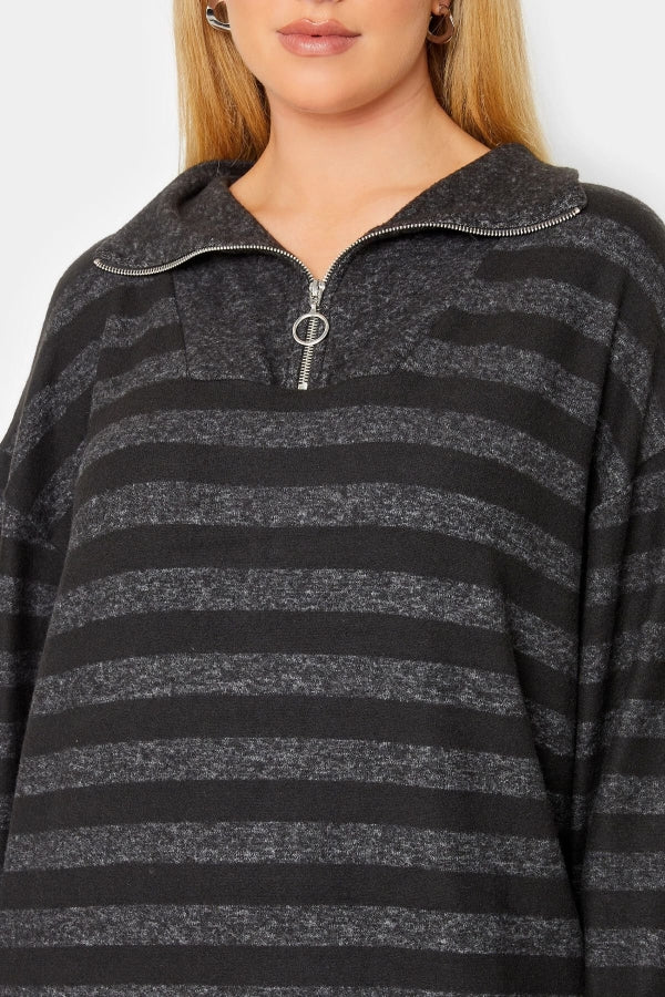 Büyük Beden V Yaka Fermuarlı Yırtmaç Detaylı Uzun Elbise 301482