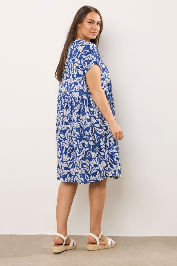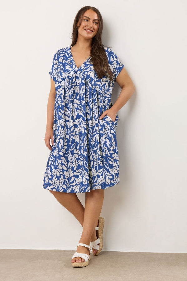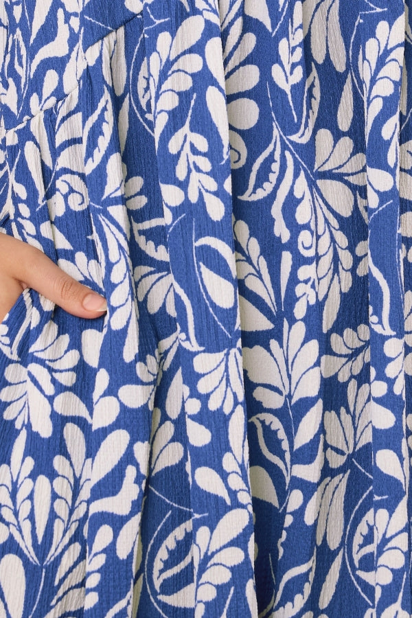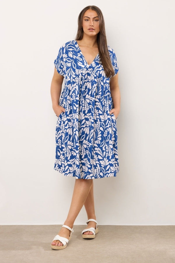 Büyük Beden V Yaka Kısa Kollu Cepli Çiçek Desenli Midi Elbise 616286