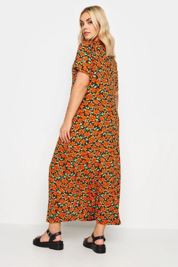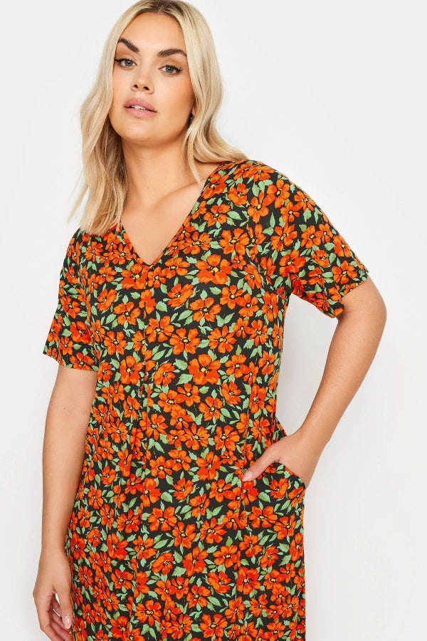 Büyük Beden V Yaka Kısa Kollu Cepli Uzun Elbise 137820