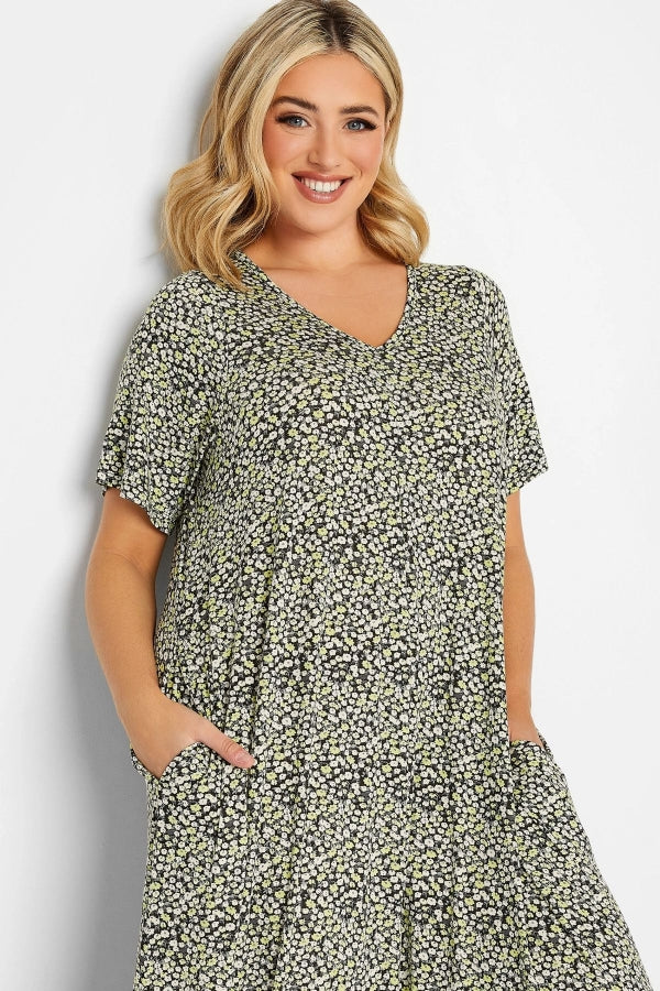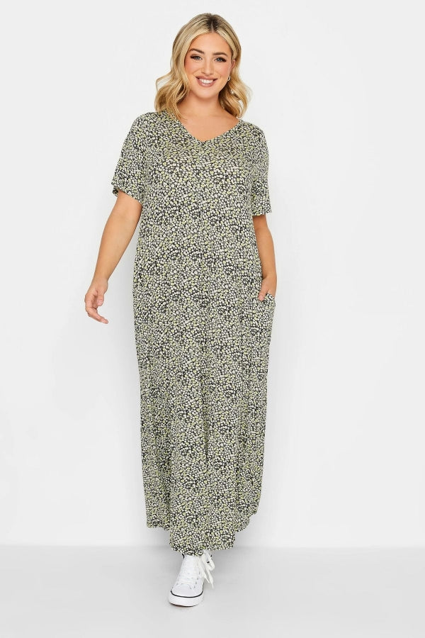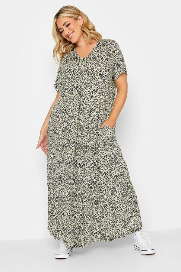 Büyük Beden V Yaka Kısa Kollu Cepli Uzun Elbise 302053