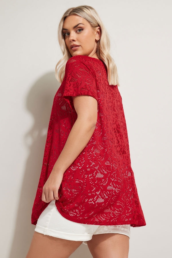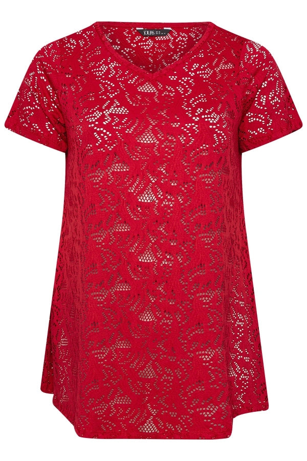 Büyük Beden V Yaka Kısa Kollu Dantel Desen Astarsız T-shirt 304093